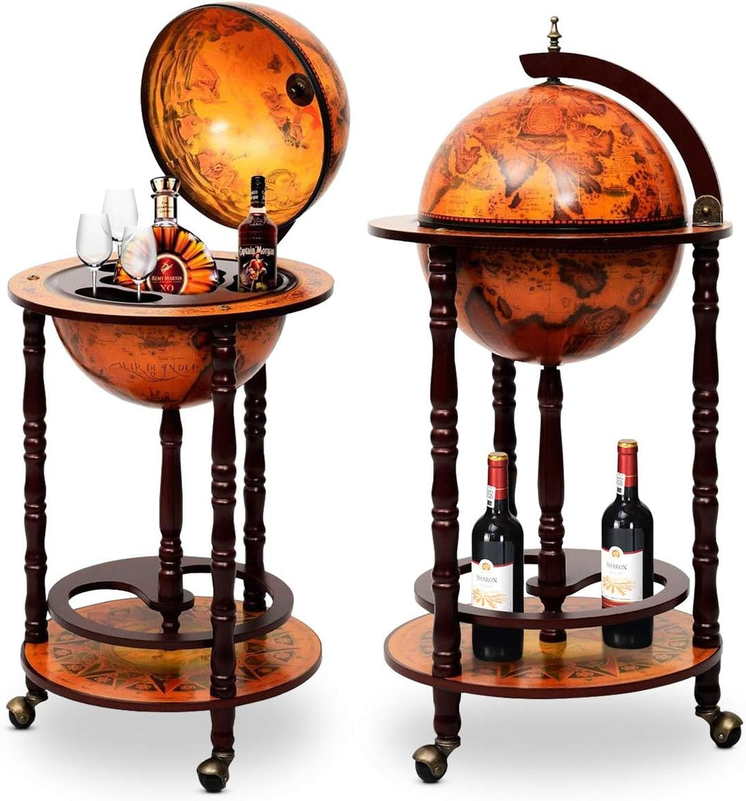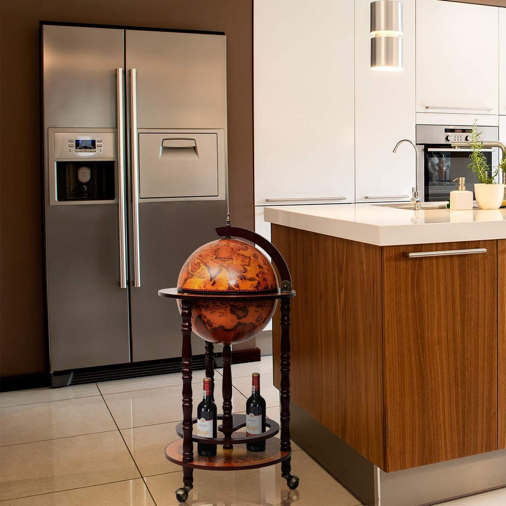 - Vielseitige Anpassungsfähigkeit - Der originell entworfene Barwagen ist ein echter Blickfang und sieht in jedem Raum gut aus. Die Minisbar kann Ihr Wohnimmer, das Arbeitszimmer oder die Kneipe in stilvollem Design dekoratieren. Auch ist die Globusbar