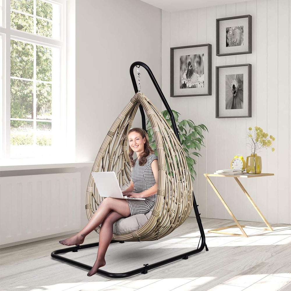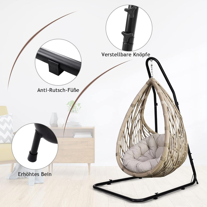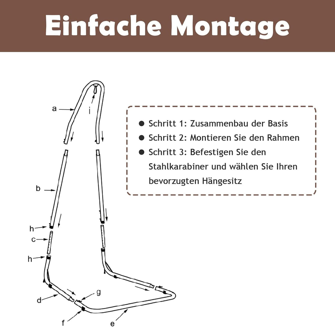 - Grosse Stabilität - Das Hängestuhlgestell besteht aus langlebigem Material mit Stahlrohren sorgt für eine starke Stabilität. Und das Gestell hat eine hohe Belastung von 150 kg, die Ihre Sicherheit darauf gewährleisten.