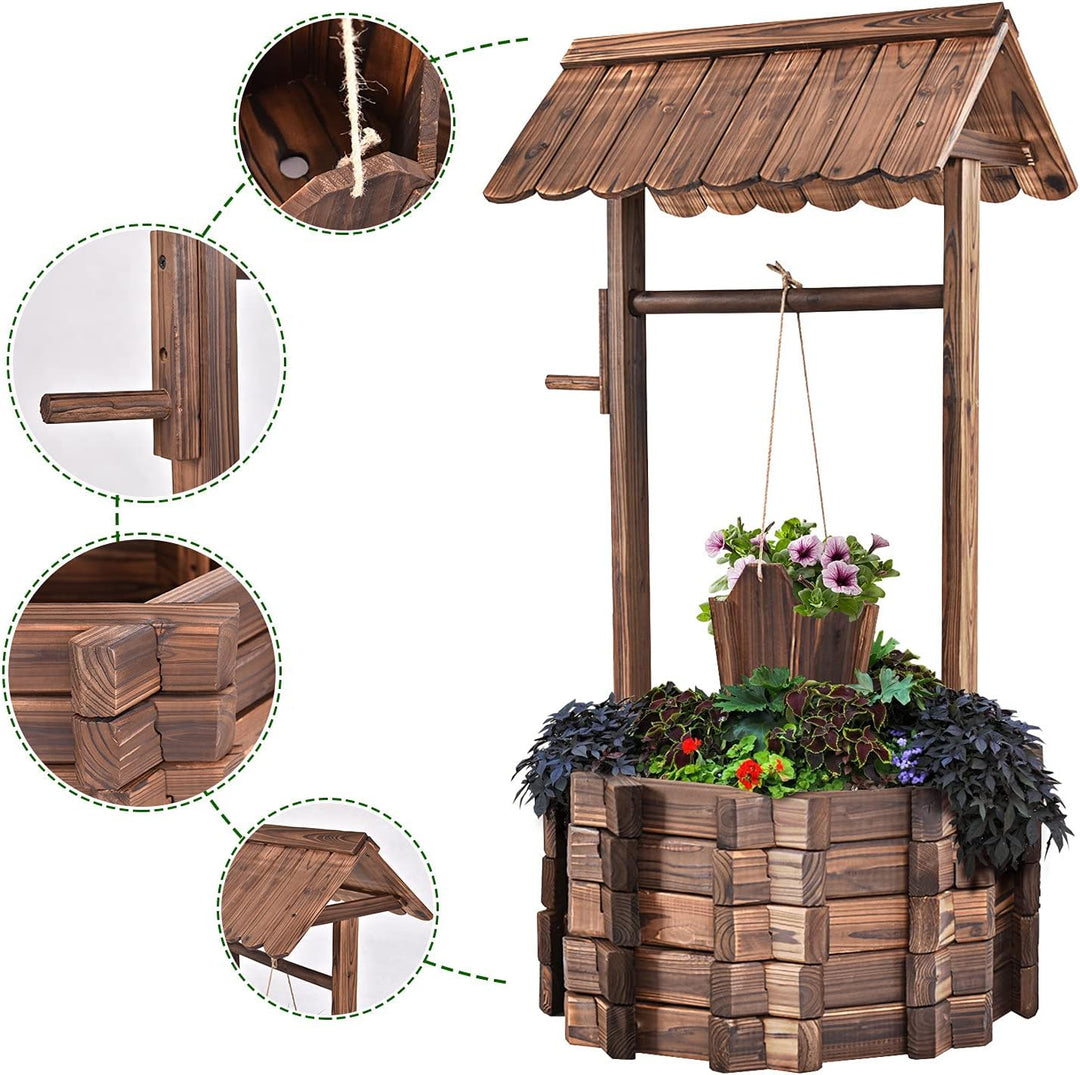 - Breite Einsetzbarkeit & Grosser Raum - Das einzigartige Design macht den Holzbrunnen sehr idyllisch und eignet sich sehr gut zur Dekoration im Garten, Hof oder auf der Terrasse. Gleichzeitig bietet der Holzbrunnen genügend Platz, um Ihre Lieblingsblumen und -pflanzen zu pflanzen, was sehr praktisch ist.