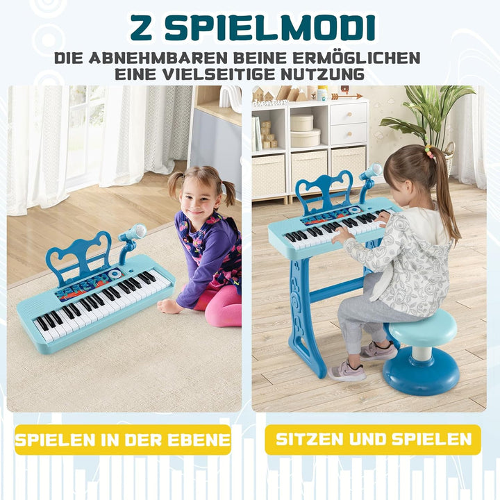 - 🎵2 Spielmodi - Dieses elektronische Klavier wird mit abnehmbaren Beinen geliefert, die eine vielseitige Nutzung ermöglichen. Kinder können wählen, ob sie auf dem flachen Boden spielen oder auf dem Hocker sitzen und je nach Vorliebe spielen.