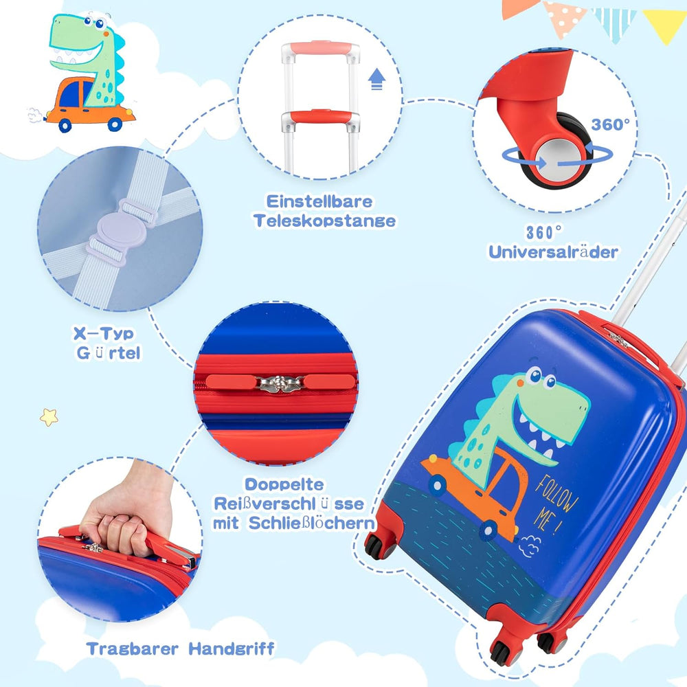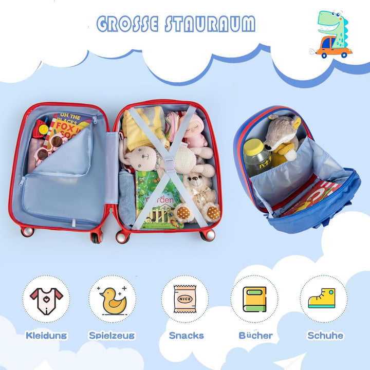 - Kinderfreundliches Aussehen - Die Zeichnungen auf dem Koffer und Rucksack sind kinderfreundlich und attraktiv für die Kinder. Deswegen gilt dieses Kinderkofferset auch als ein sehr gutes Geschenk für Ihre Kinder.