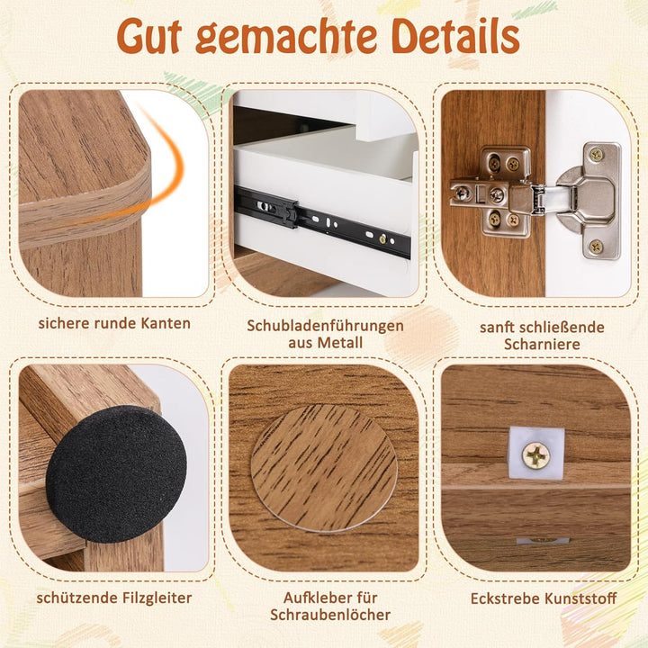 - 🧸 Benutzerfreundliche Details - Die durchdachten, benutzerfreundlichen Funktionen umfassen sanfte Metallschienen für müheloses Öffnen der Schubladen, rutschfeste Füsse zum Schutz Ihrer Böden, Soft-Close-Scharniere zur Vermeidung von Zuschlagen