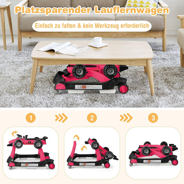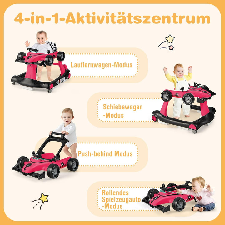 - 🚗 4 in 1 - Unsere Gehhilfe verfügt über vier Modi: Lauflernmodus und Push-Behind-Modus, Push-Car-Modus, Rollender Spielzeugauto-Modus. Daher ist diese 4 in 1 Lauflernhilfe für Baby von 6 bis 18 Monaten geeignet.