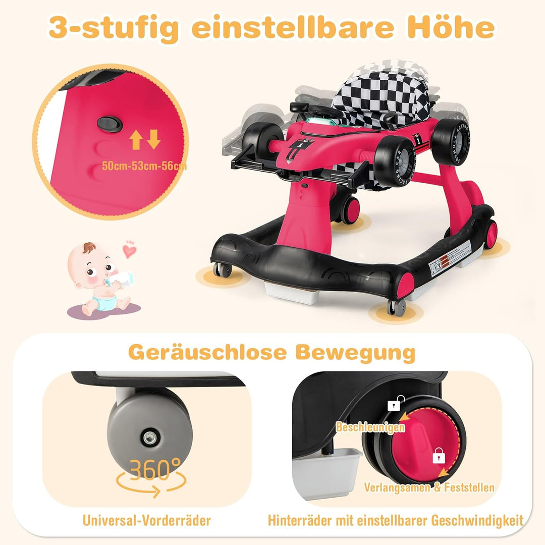 - 🚗 Autoförmiges Aussehen - Dieses autoförmiges Baby Walker mit Lenkrad, Schaltung, Musik und Licht wird Ihrem Kind viel Spass machen.