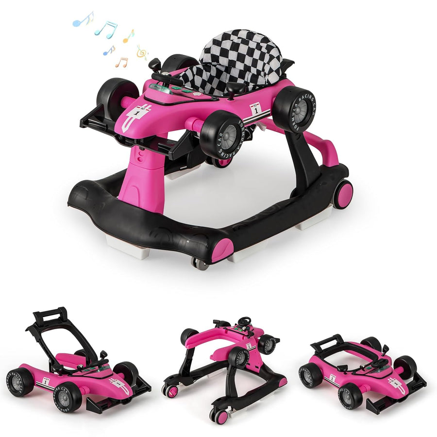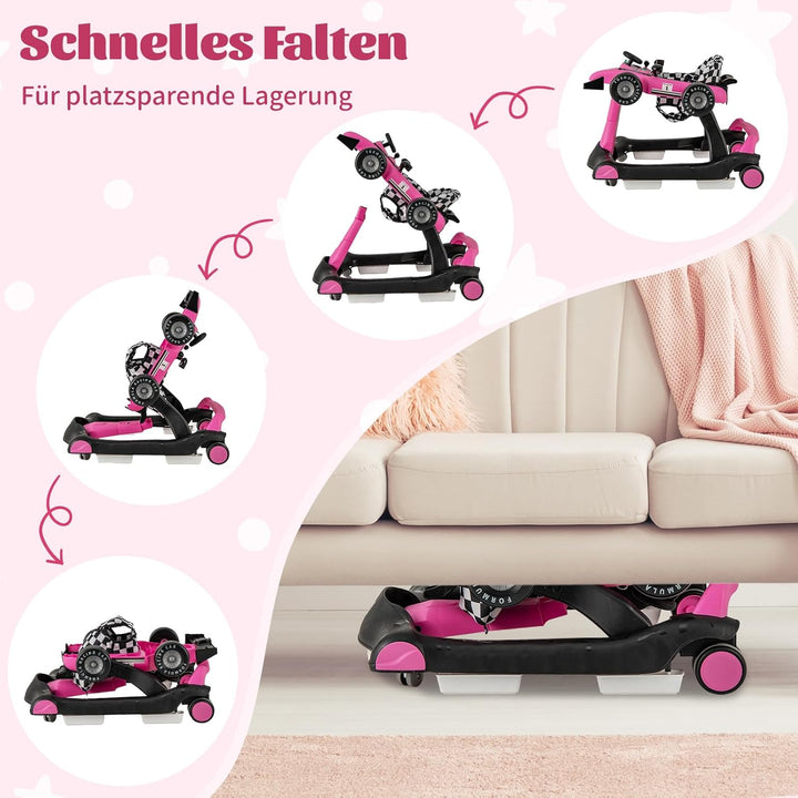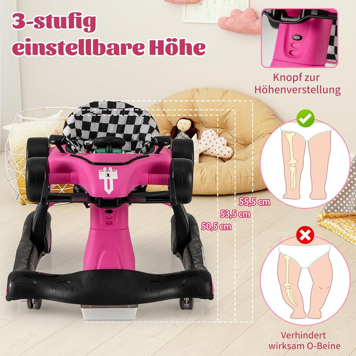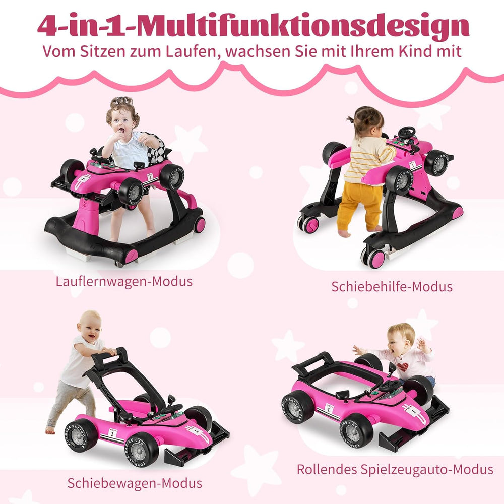 DREAMADE Lauflernhilfe, 4 in 1 Autoförmiger Lauflernwagen mit einstellbarer Geschwindigkeit, Musik &