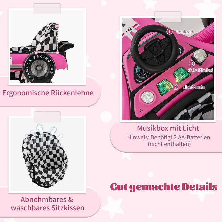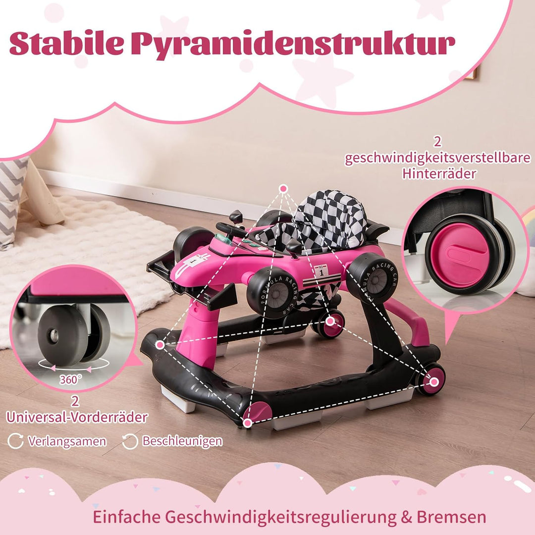 • 🚗 Autoförmiges Aussehen - Dieses autoförmiges Baby Walker mit Lenkrad, Schaltung, Musik und Licht wird Ihrem Kind viel Spass machen.