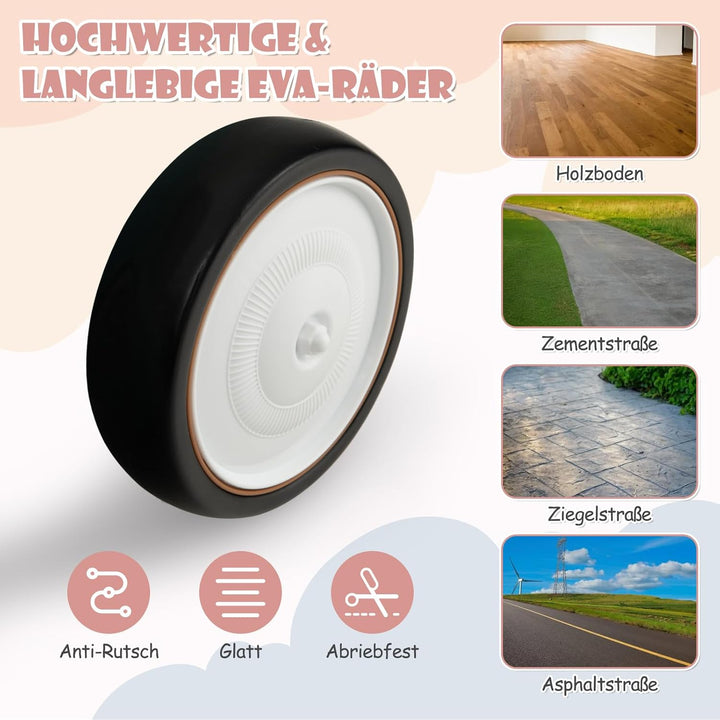 - 🏁Hochwertige & Langlebige Räder - Diese Räder sind mit geländegängigen EVA-Rädern ausgestattet und bieten eine hervorragende Leistung. Sie sind rutschfest, verschleissfest und stossdämpfend und sorgen für reibungslose und sichere Fahrten auf