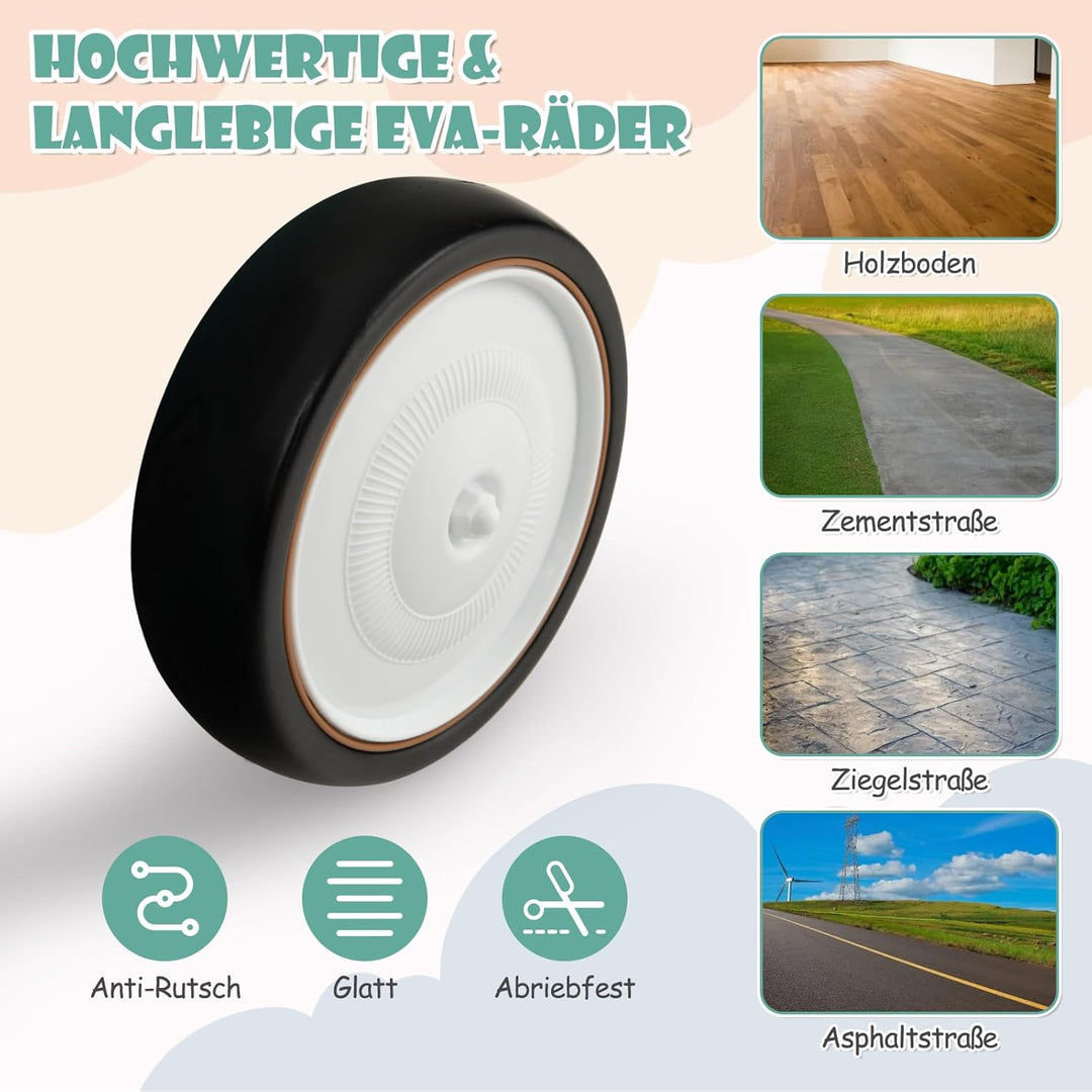 • 🏁Hochwertige & Langlebige Räder - Diese Räder sind mit geländegängigen EVA-Rädern ausgestattet und bieten eine hervorragende Leistung. Sie sind rutschfest, verschleissfest und stossdämpfend und sorgen für reibungslose und sichere Fahrten auf