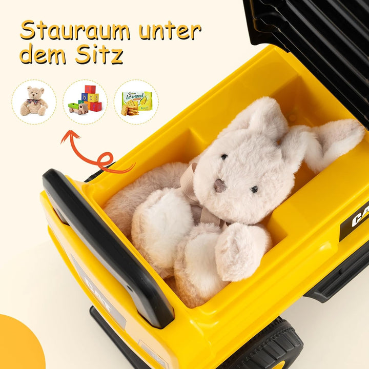 - 🏜️Versteckter Stauraum - Der grosse Stauraum unter dem Sitz des Baggers bietet Platz für die Spielzeug, Bauklötze oder Snacks des Kindes, sodass Sie nicht alles in den Händen halten müssen, während Sie mit Ihrem Kind spielen. Gleichzeitig sind
