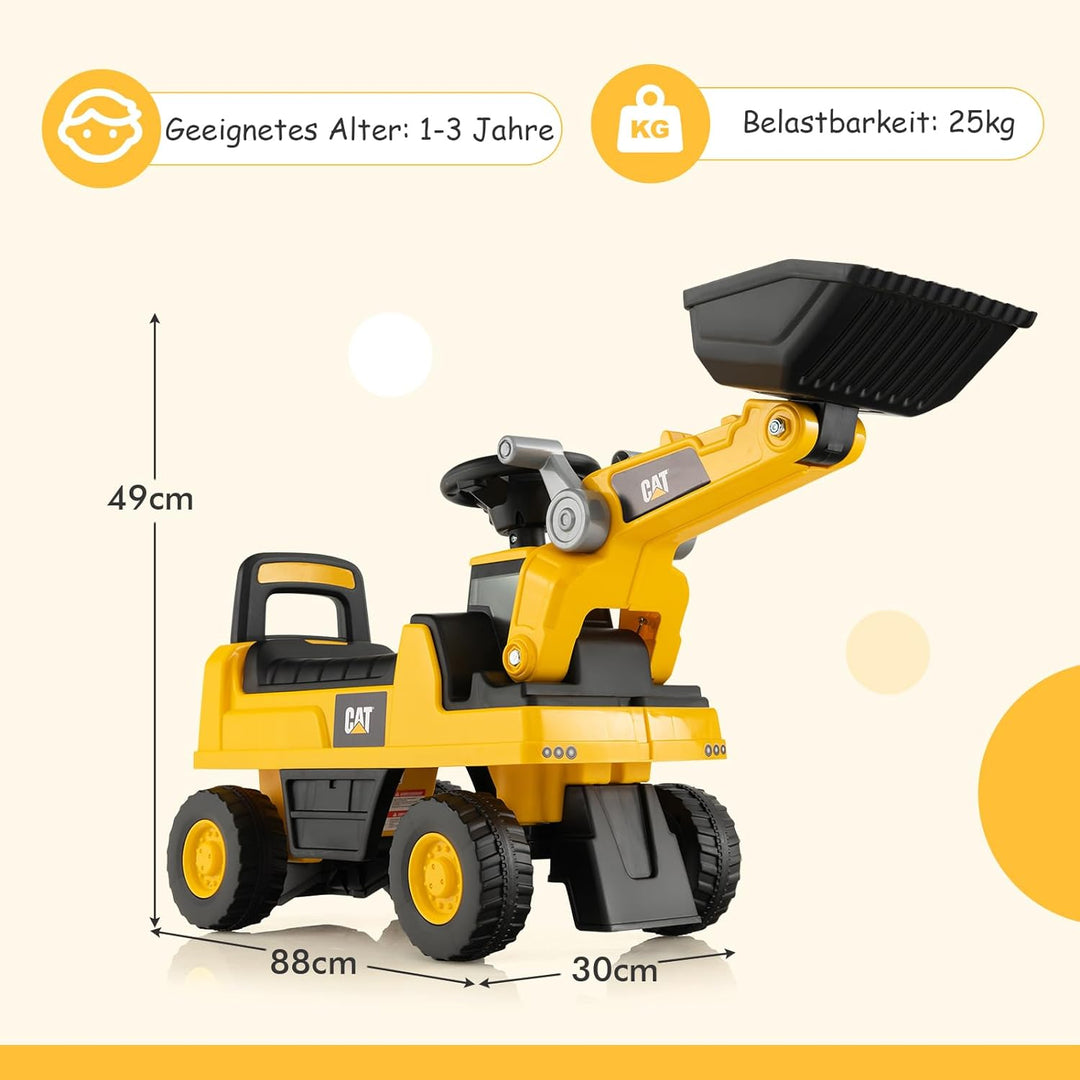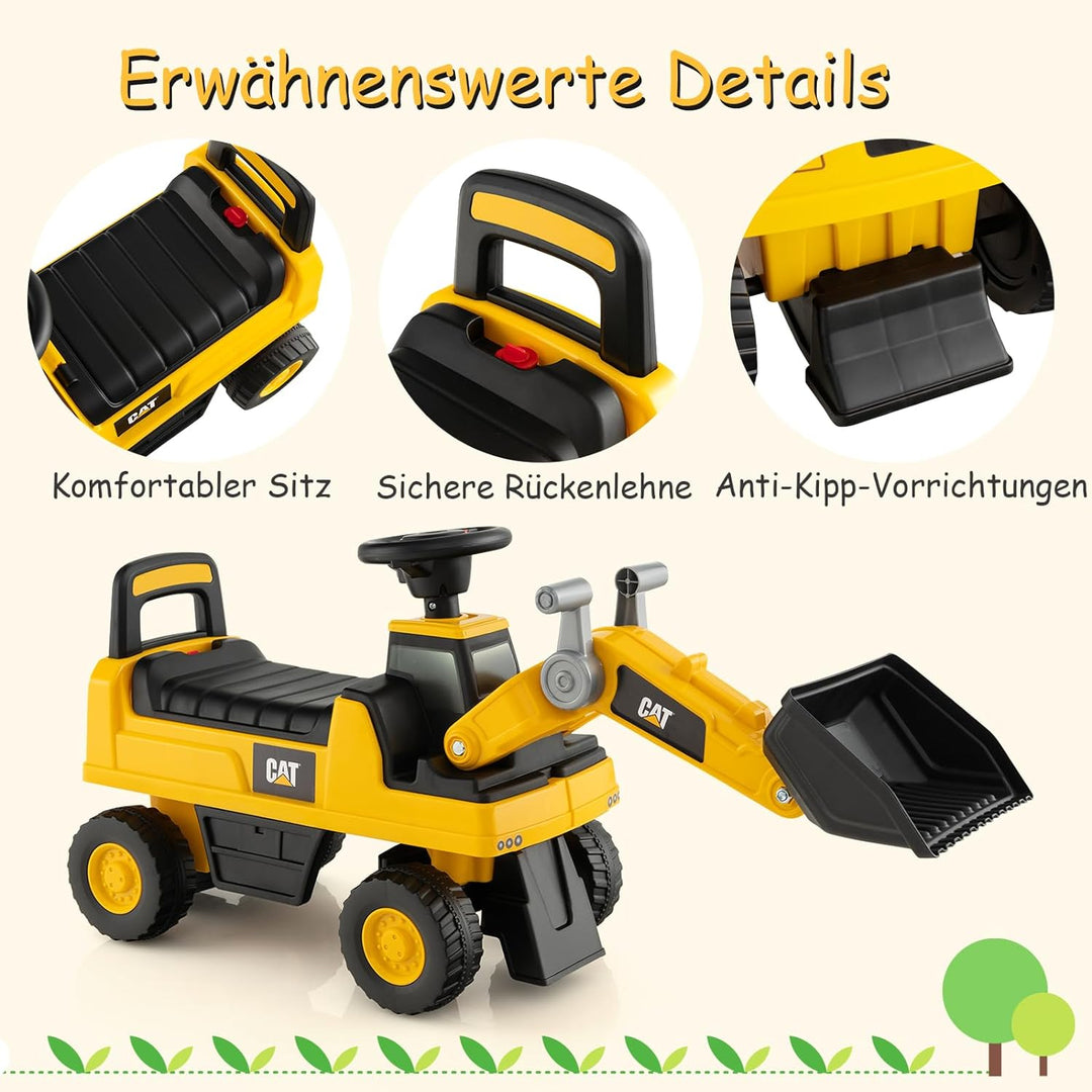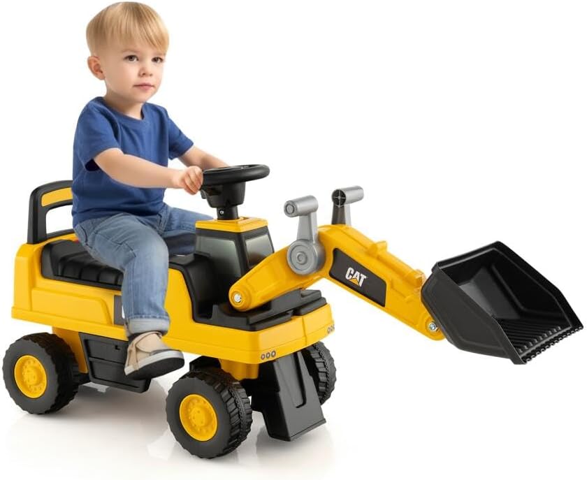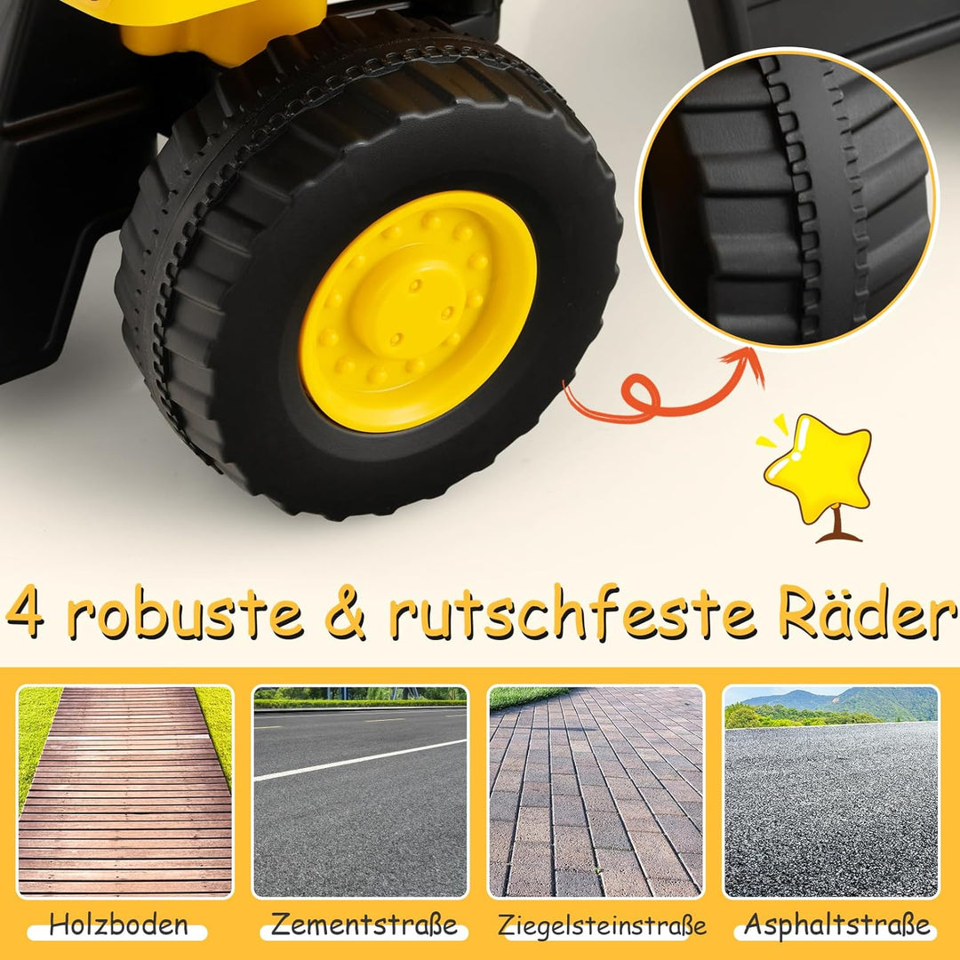 - 🏜️Hochwertige Räder - Die Räder des Aufsitzbaggers sind strapazierfähig und rutschfest, damit Kinder ihn sowohl drinnen als auch draussen auf Holz-, Beton-, Ziegel- und Asphaltböden fahren können. Sie können mit den Kindern auf dem Bagger