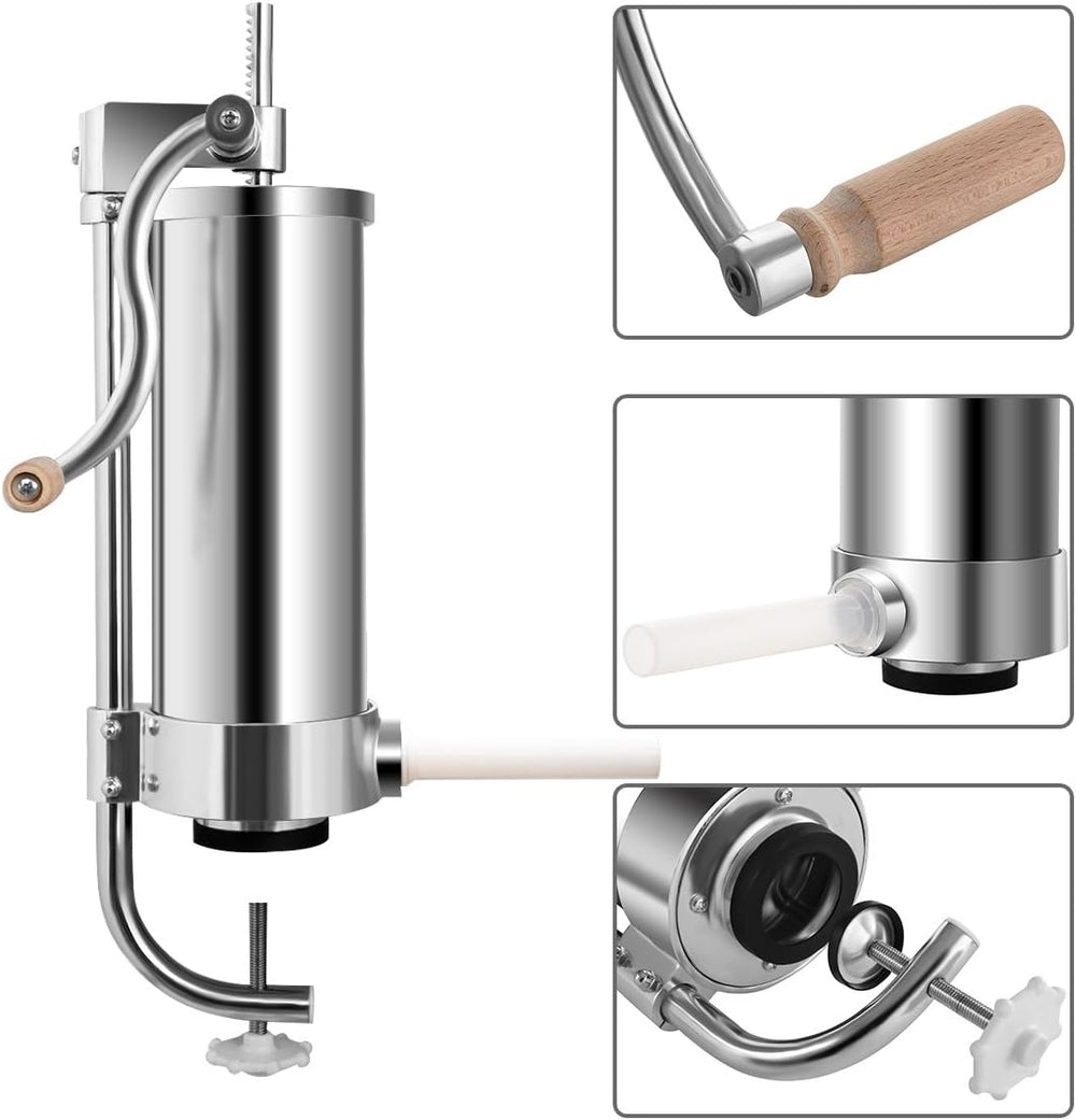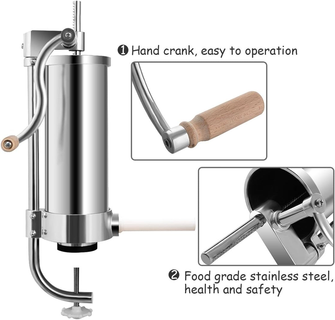 - Schraubzwinge Bietet Stabilität - Mithilfe der Schraubzwinge an der Unterseite der Wurstfüllmaschine können Sie diese stabil auf Ihrem Tisch befestigen, indem Sie die Schrauben festziehen. Bei ausreichender Spannung verhindert diese Befestigung jegliches Verrutschen und hält das Gerät während der Arbeit stabil.