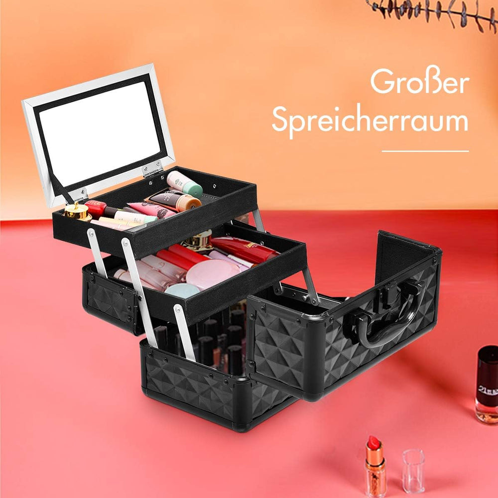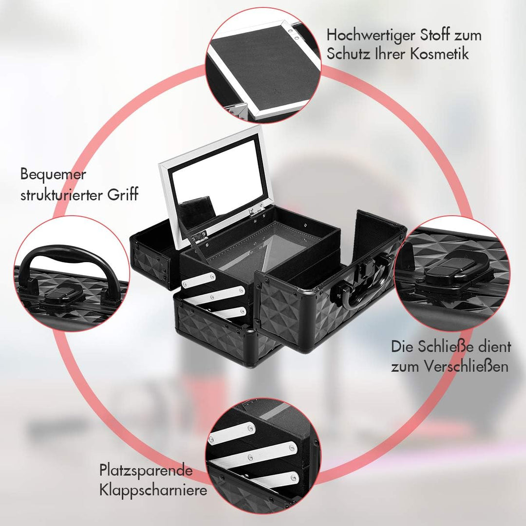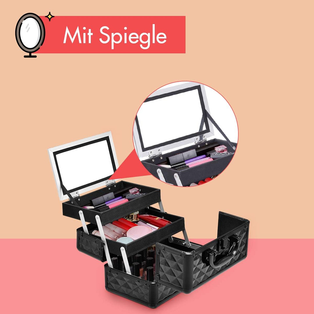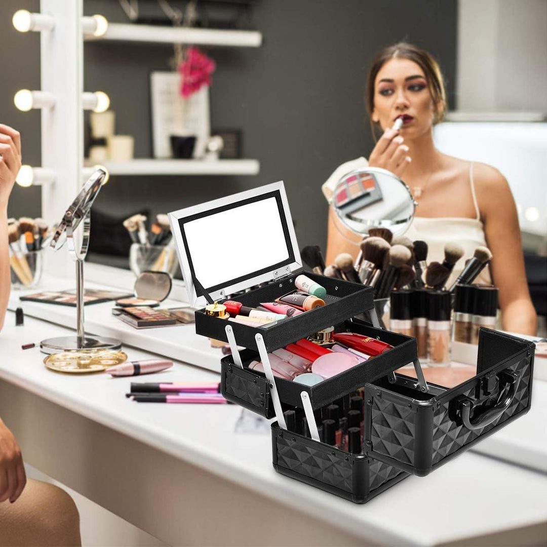 - Dehbare Trays mit Spiegel - Es gibt zwei Schichten dehnbarer Tabletts sind innerhalb des Kosmetikkoffers konzipiert. Es ist bequem für Sie, mehr Dinge in einer organisierten Weise zu speichern.