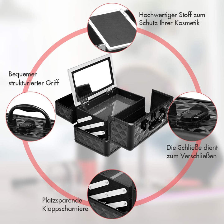 - Grosse Innenräume - Der Beauty Koffer mit einer Grösse von 23x15x15 cm bietet einen riesigen Innenraum, der Ihnen erlaubt, viele kosmetische Werkzeuge und Produkte zu setzen. Dieser Minikoffer für Kosmetik ist für Sie der beste Helfer.