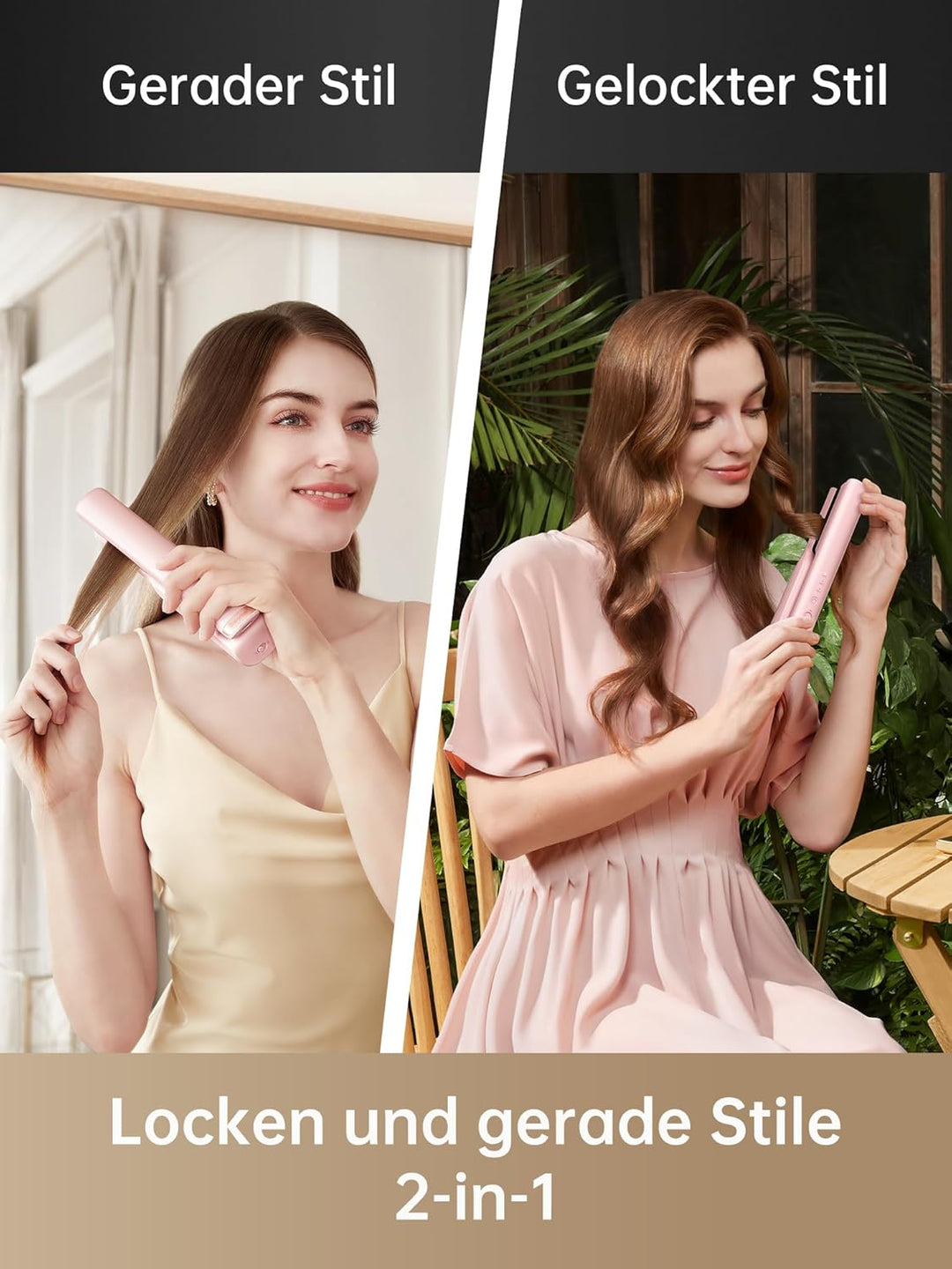 Dreame Hair Glamour Haarglätter, Kabelloser Tragbarer 2-in-1-Glätteisen, Negative Ionen, Gleichmässi