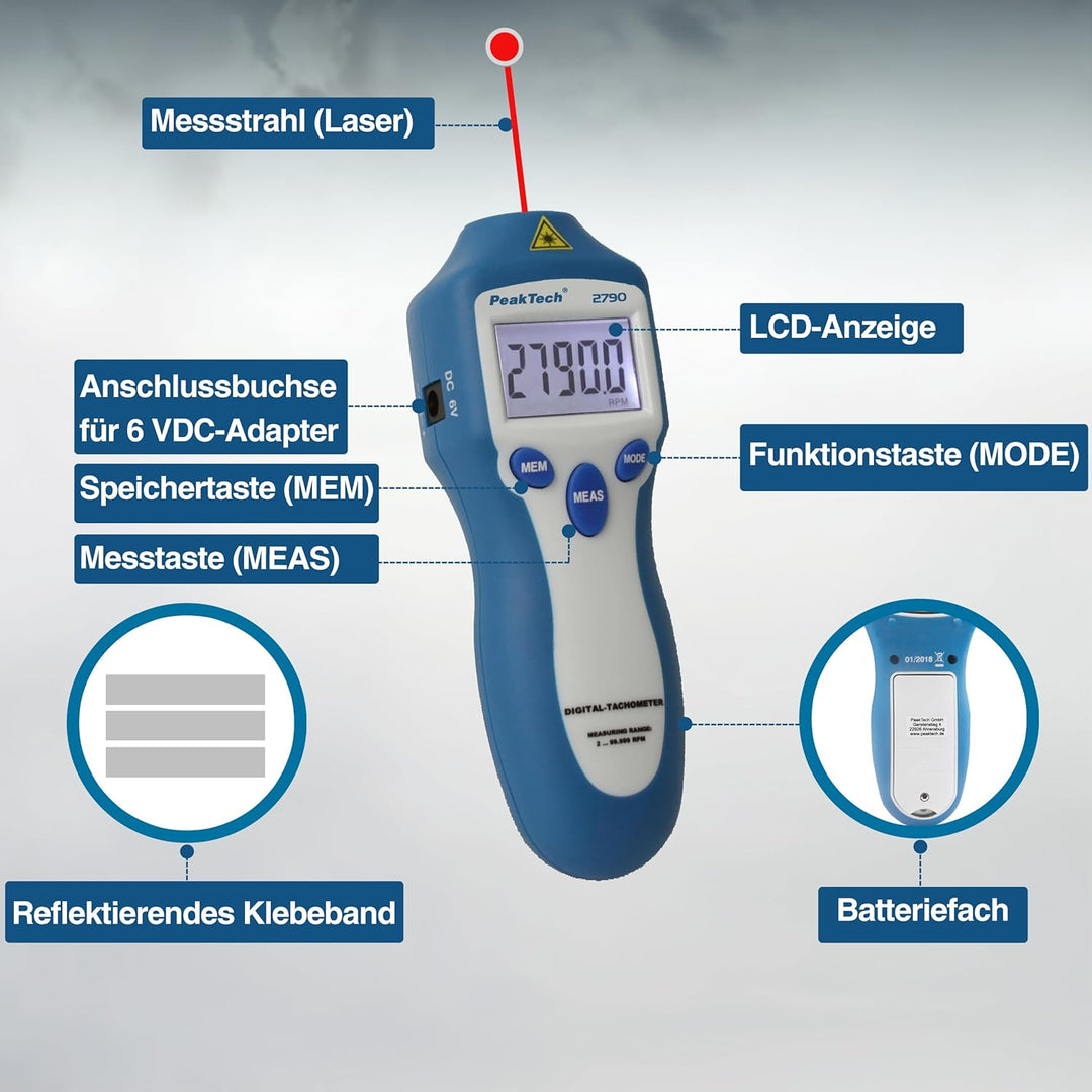 - Berührungsloses Drehzahlmessgerät 2 bis 99.999 UPM