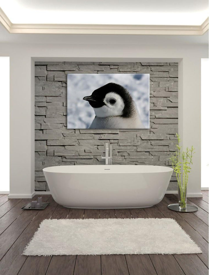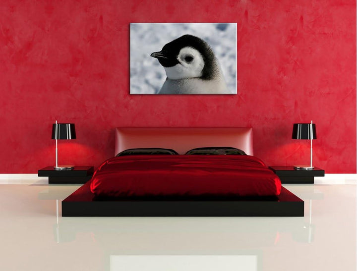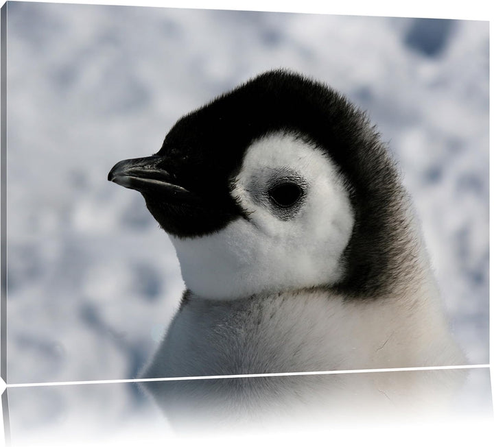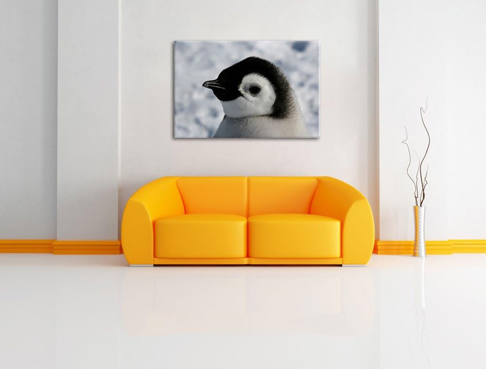 drei Kaiserpinguinküken Leinwand, XXL riesige Bilder fertig gerahmt mit Keilrahmen, Kunstdruck auf W