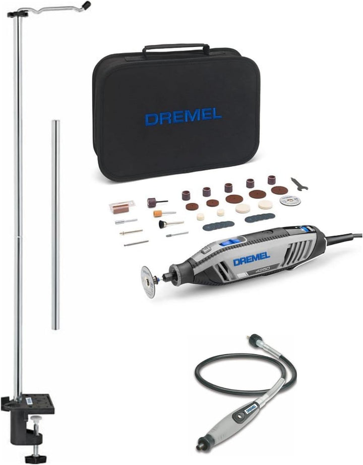 - Die flexible Welle (225) in Kombination mit dem Werkzeughalter (2222), was in diesem Paket enthalten ist, ermöglicht es, Ihr Dremel 4250 Rotationstool über Ihre Werkbank zu aufzuhängen, wodurch Sie wertvollen Arbeitsraum sparen und das Gewicht vom