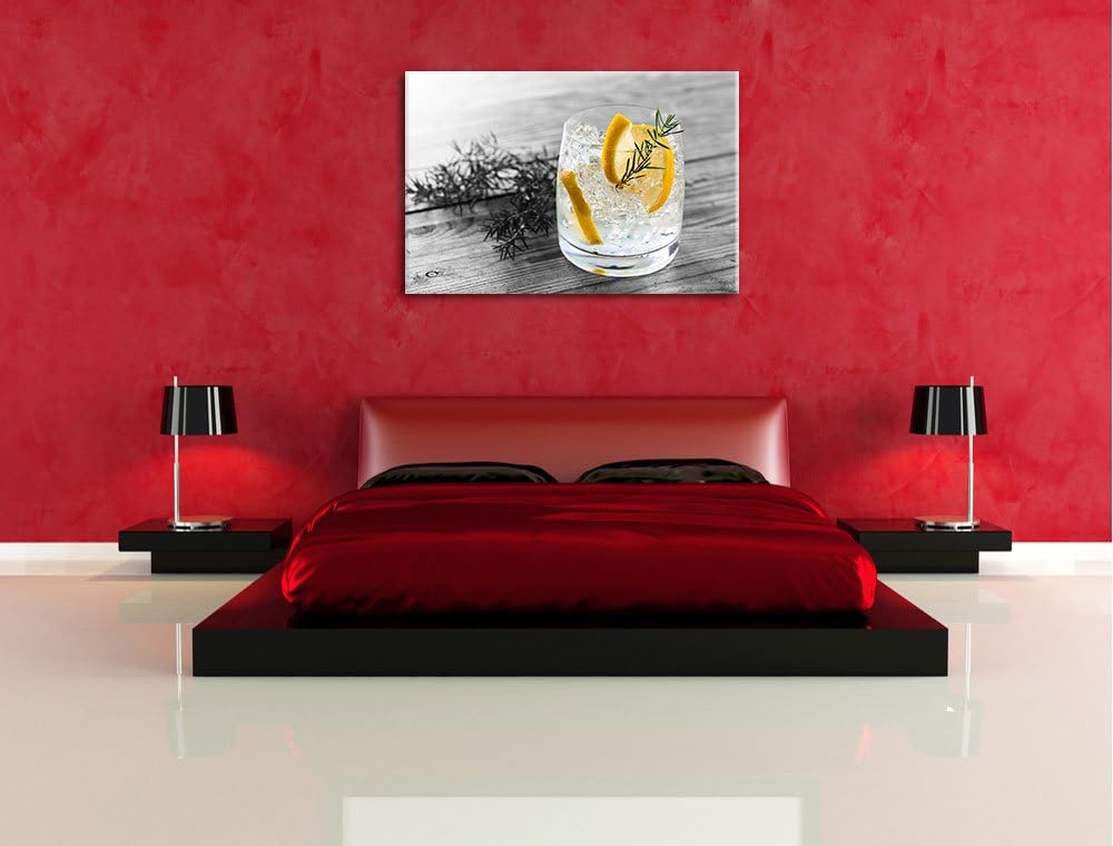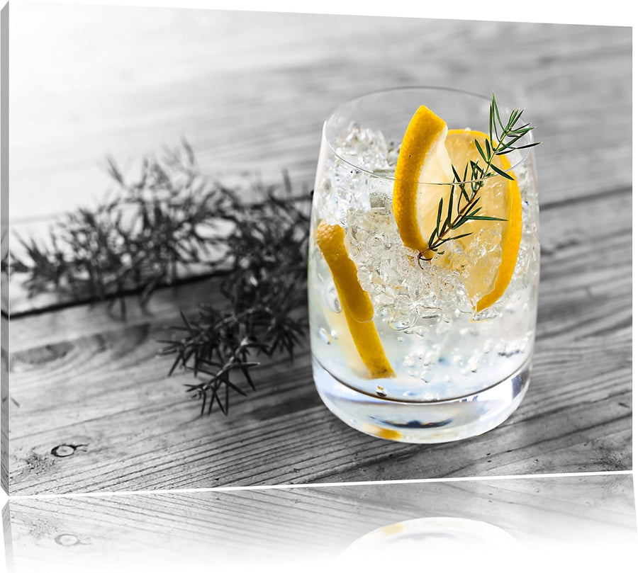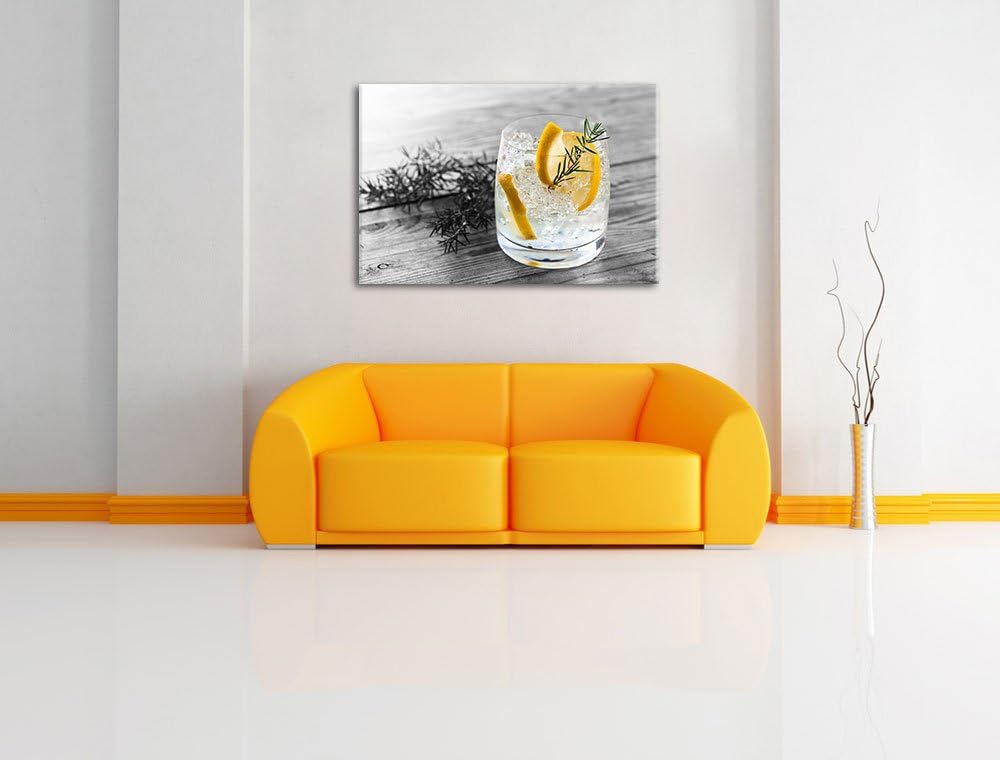 Drink garniert mit Zitrone und Rosmarin schwarz/weiss Format: 100x70 auf Leinwand, XXL riesige Bilde