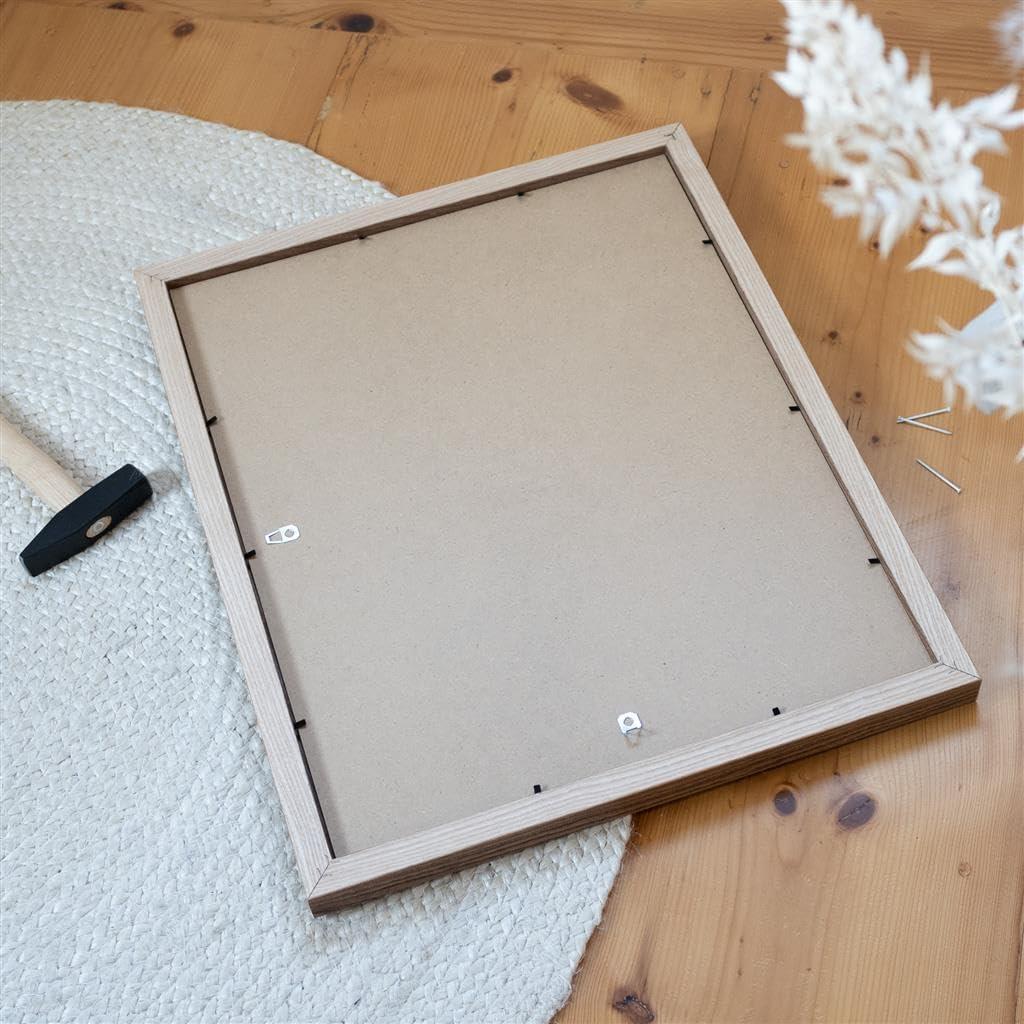 - ✅ Die Rückwand des Echtholzrahmens ist aus stabilem MDF gefertigt und mit Metallaufhängern versehen