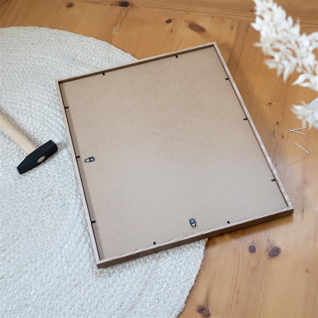 - ✅ Die Rückwand des Echtholzrahmens ist aus stabilem MDF gefertigt und mit Metallaufhängern versehen