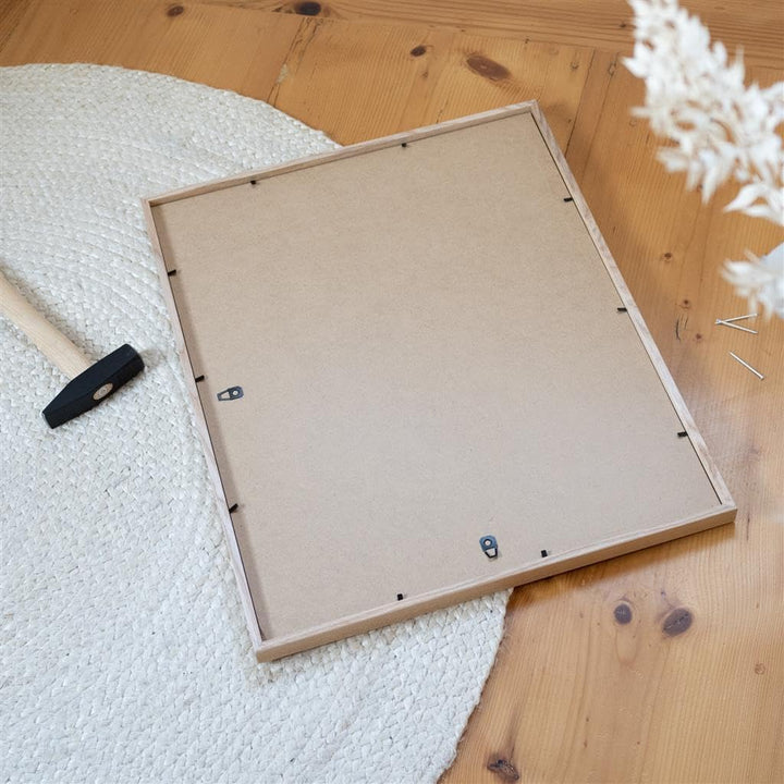 - ✅ Die Rückwand des Echtholzrahmens ist aus stabilem MDF gefertigt und mit Metallaufhängern versehen