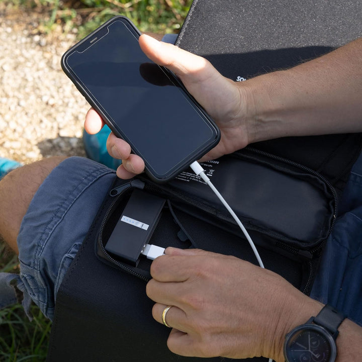 - 🥾 Egal ob bei Trekkingtouren, ⛺ beim Zelten oder beim Bushcrafting – mit dem Solarpanel PB-10000 XL laden Sie Ihr Smartphone, Tablet oder andere Geräte mit USB Anschluss schnell und zuverlässig auf