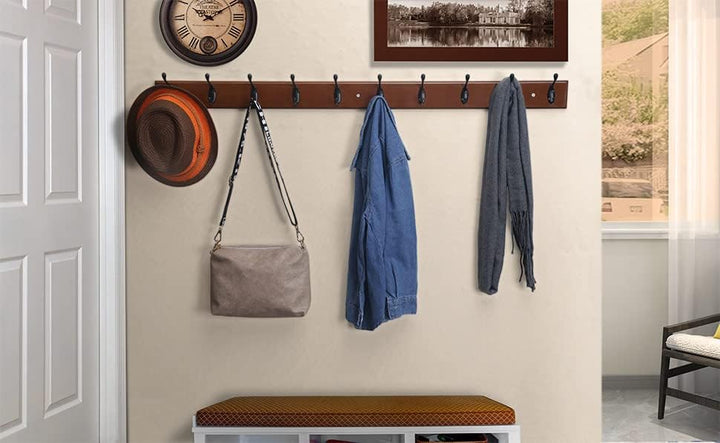 - Perfekter kleiderhaken wand mit 10 haken zum aufhängen von mänteln, hüten, handtüchern, taschen und schals, bademantel.