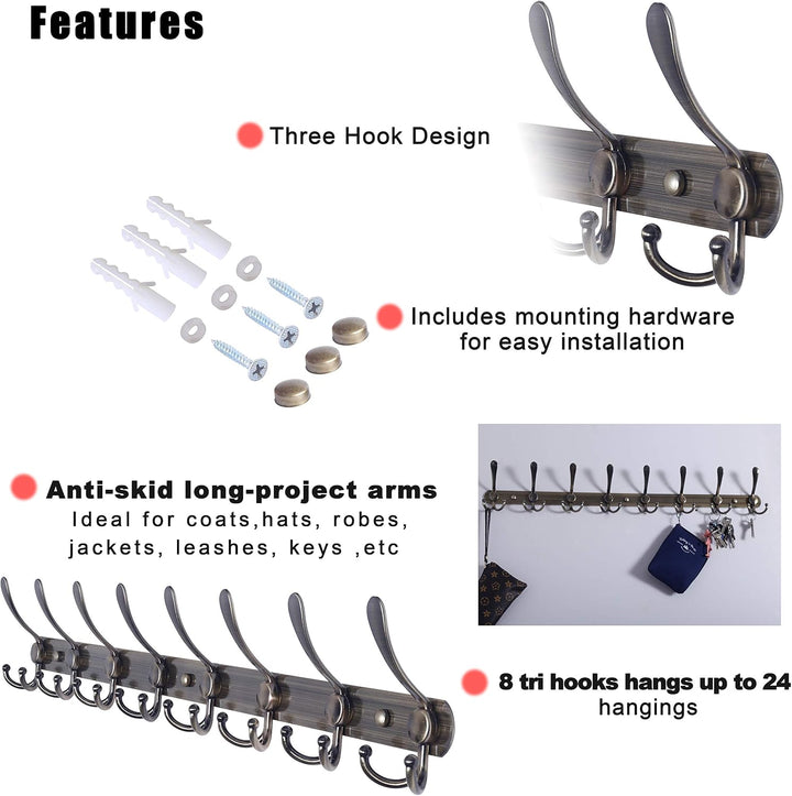 - 5.Die hakenleiste mit 8 dreifachhaken bieten reichlich platz für mäntel, hüte, Jacken, handtücher, handtaschen, schals und bademäntel; ideal für flur, hauswirtschaftsraum, badezimmer, schlafzimmer, garderobe, küche usw.