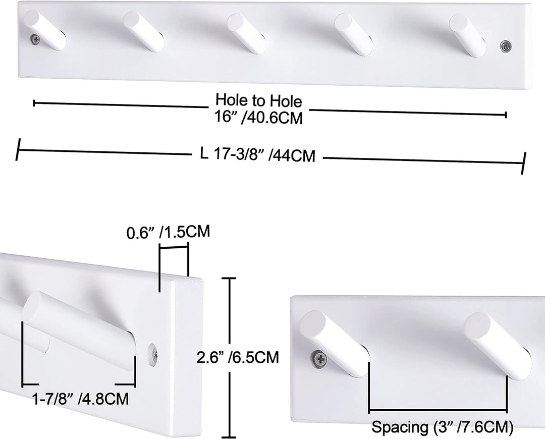 - Grössen: 44 x 7,6 x 6,5 cm; 40,6 cm Lochabstand, inkl. 2 x wandgarderobe mit 5 haken, Weiss