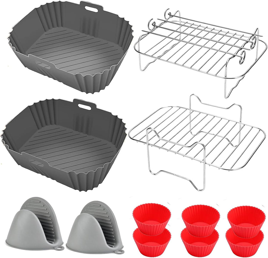 - [12-Teiliges Airfryer Zubehör]: Kompatibel für Ninja AF300EU 7,6L, Ninja AF300EU 7,6L, COSORI 8,5L, cookwise Devology Cecotec 9L, Balter Innsky CHEFREE 8L Doppel Fritteusen Air Fryer. Paket einschliessen: 2x Rechteckige Silikon Backform, 1x Dämpfen