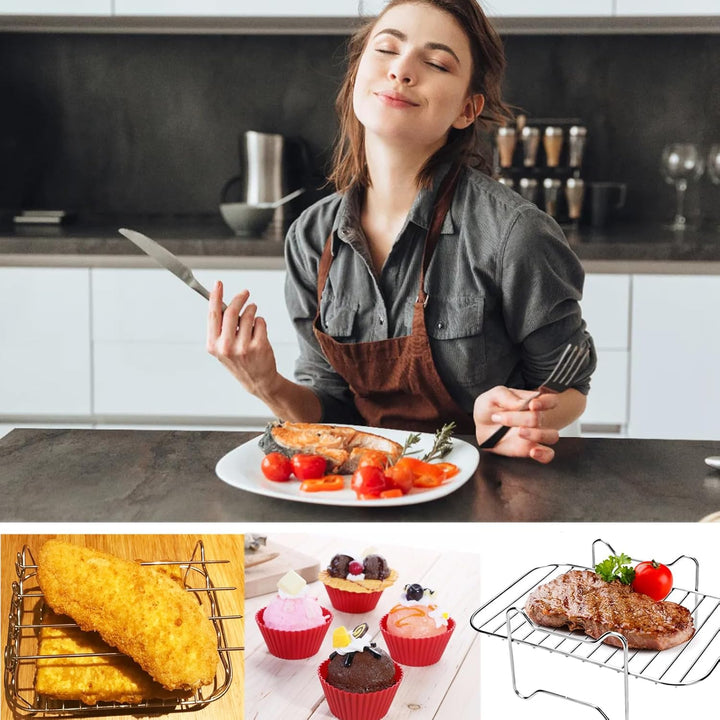 - [Mehrzweck-304 Edelstahl Heissluftfritteuse Grillrost]: Sie können als Doppeldecker verwendet werden und verdoppeln die Kapazität Ihrer Fritteuse, was ein grosser Vorteil ist, wenn Sie für eine grosse Familie kochen oder Gäste bewirten. Gegenstände