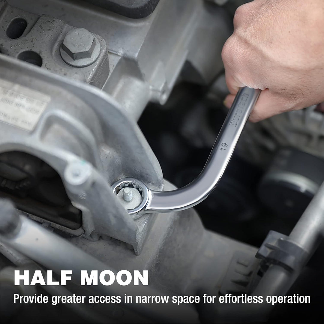 • 【C-Form】 Der Starter- und Blockschlüssel-Satz mit gebogenem Design eignen sich hervorragend für maximalen Zugang in engen Bereichen, wie z. B. beim Montieren oder Demontieren von Teilen in einem Automotor oder in Maschinen, wodurch Ihre Arbeit