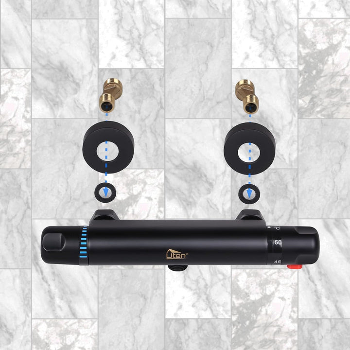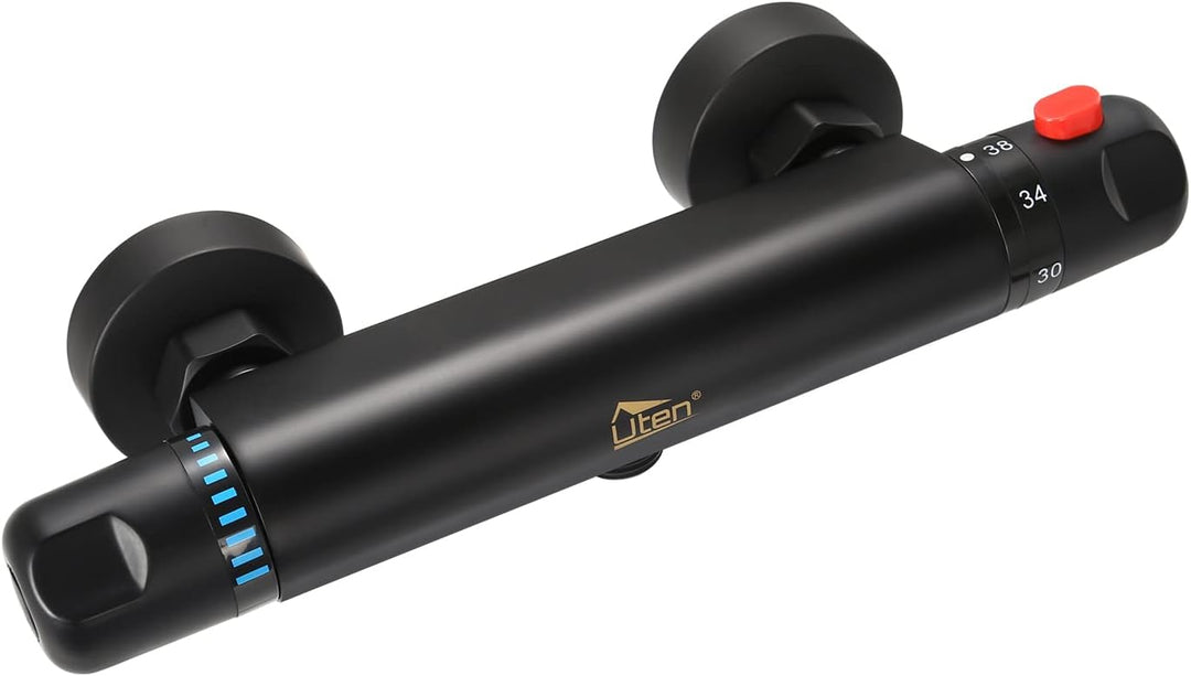 - 【PROFESSIONELLE TECHNOLOGIE】Dieser schwarzer Duschthermostat von Uten ist aus hochpräzisem Messing gefertigt, so dass Sie sich keine Sorgen um Rost machen müssen. Die Oberfläche ist PVD-beschichtet mit einer schwarzen, mattierten Textur, die sich