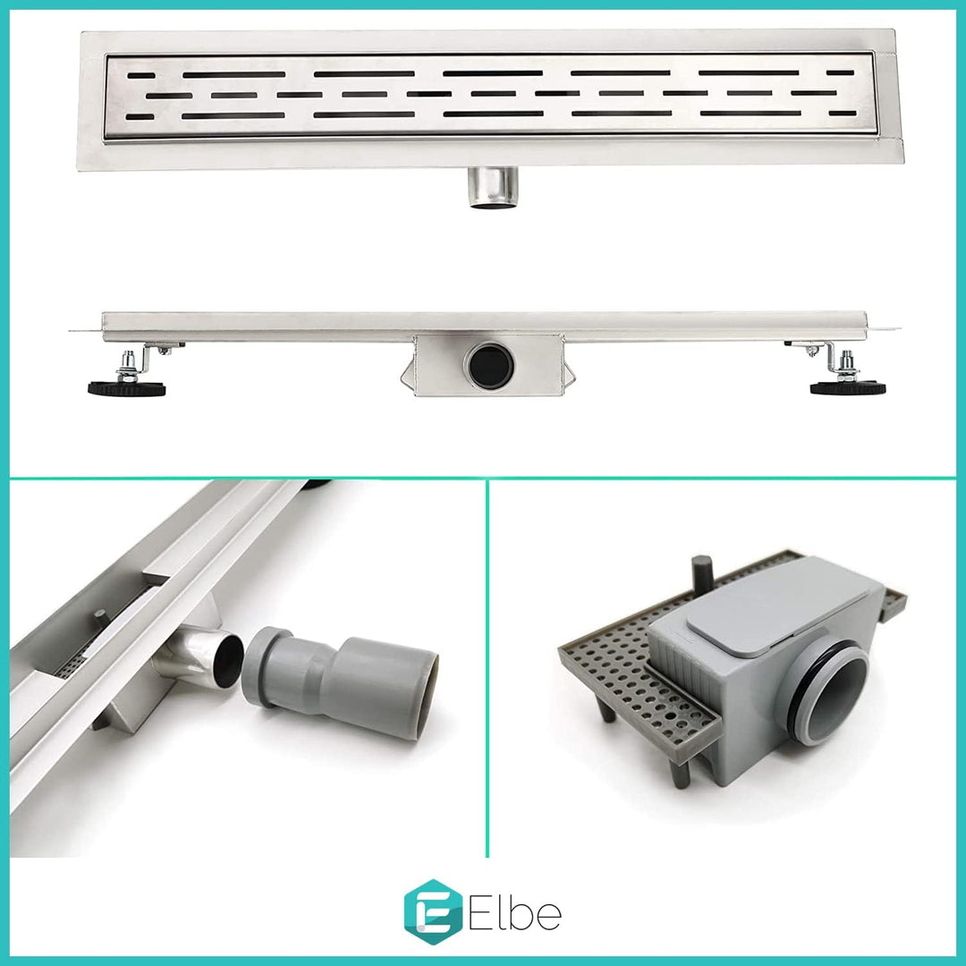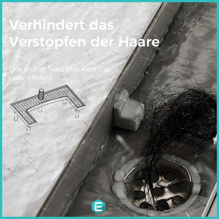 - đłăHochwertiger Edelstahlă Die obere Abdeckung und der Bodenablaufboden sind aus Edelstahl 304 gefertigt. Die OberflĂ€che der Duschrinne ist mit Rostschutzfarbe beschichtet und mit dem ausgeklĂŒgelten Herstellungsverfahren.