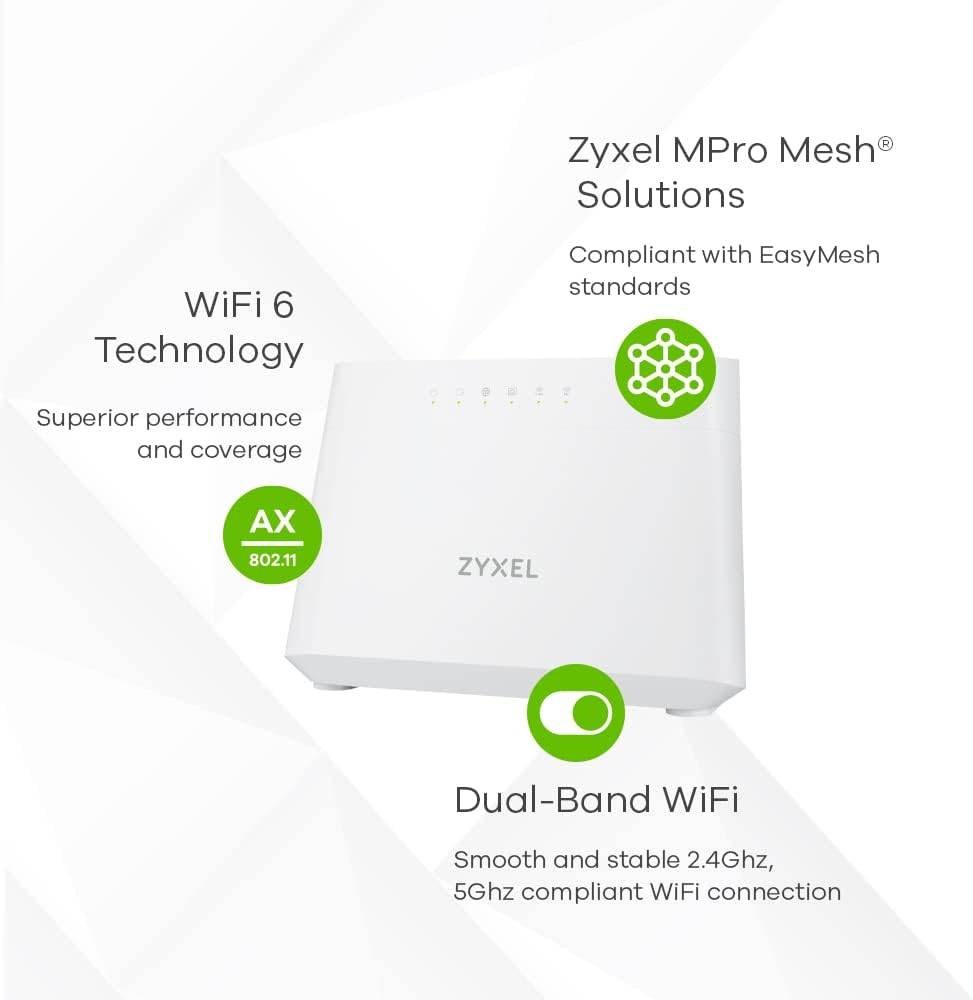 - ZYXEL DX3301-T0-EU02V1F WIFI 6 AX1800 VDSL2 5-PORT SUPER VECTORING GATEWAY (UPTO 35B) AND USB