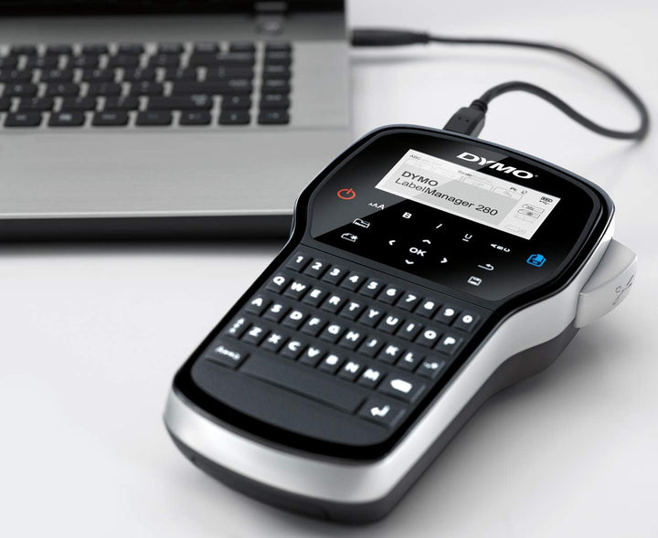 - DYMO LabelManager 280 Wiederaufladbares Handheld-Etikettendrucker-Set, QWERTY-Tastatur, mit 2 Rollen D1-Etiketten und Tragetasche
