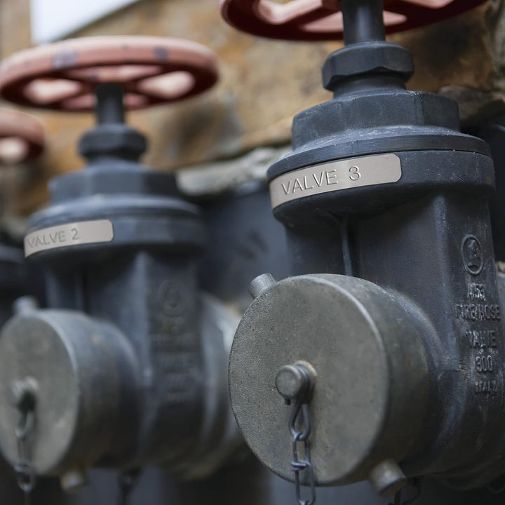 - Verwendet 12 mm breite Etiketten aus Edelstahl & Aluminium