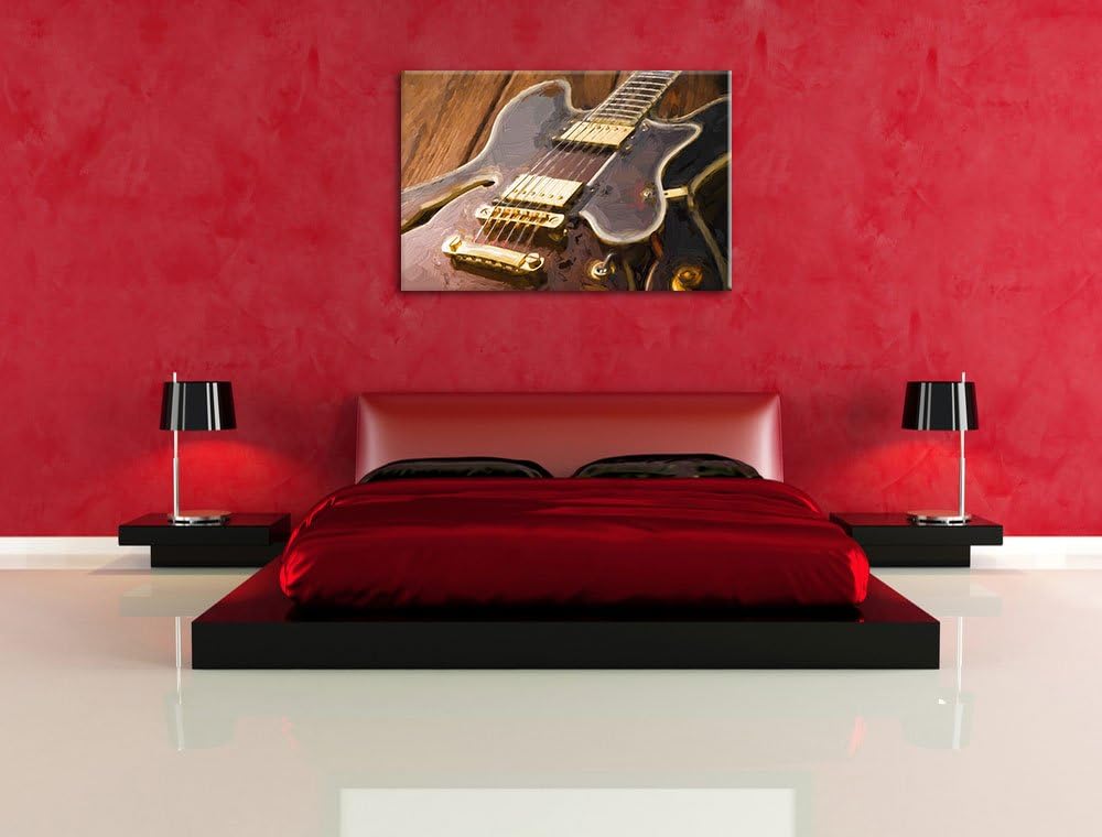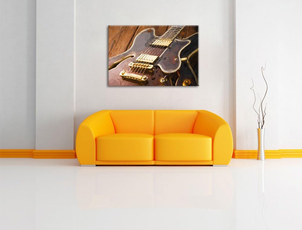 E-Gitarre Pinsel Effekt, Format: 100x70 auf Leinwand, XXL riesige Bilder fertig gerahmt mit Keilrahm