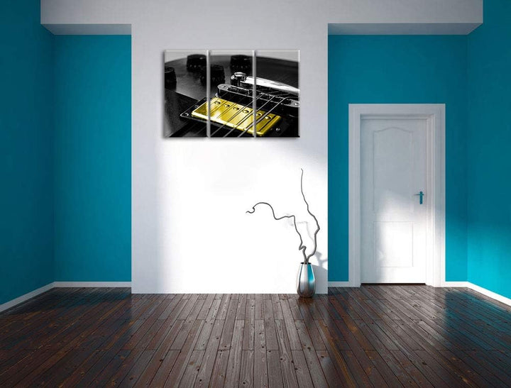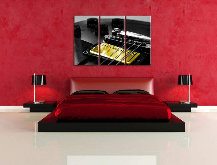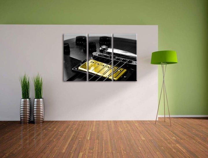 E-Gitarre mit Tonreglern schwarz/weiss 3-Teiler Leinwandbild 120x80 Bild auf Leinwand, XXL riesige B