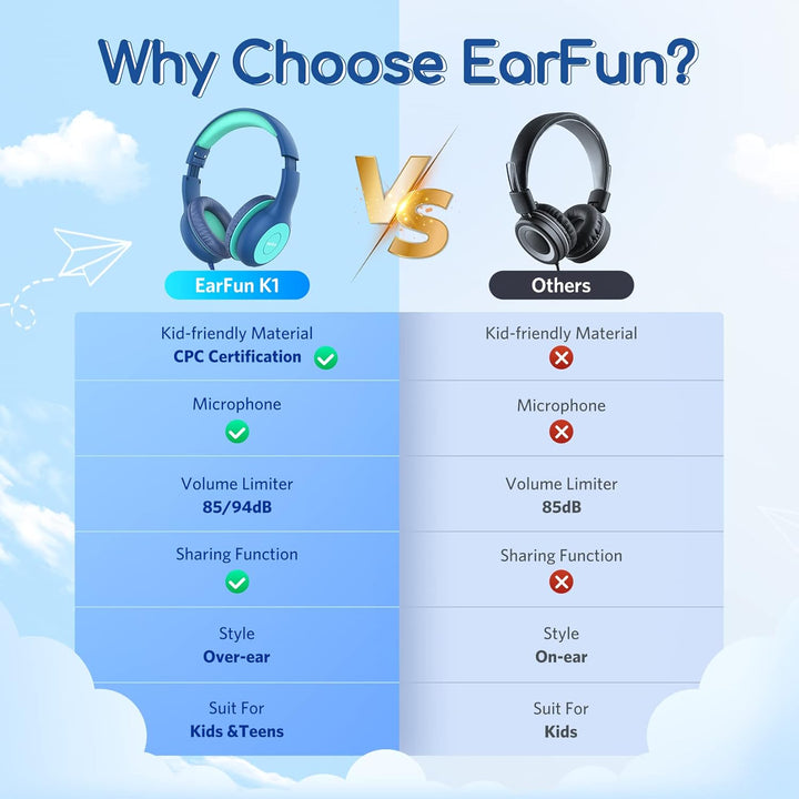 - HOCHWERTIGER STEREOKLANG UND HD-MIKROFON: Der 40-mm-Treiber und die professionelle EarFun-Klangabstimmung sorgen dafür, dass die EarFun Kinderkopfhörer einen verzerrungsfreien Klang bieten. Kinder können bei Lernvideos, Online-Kursen, Musik,