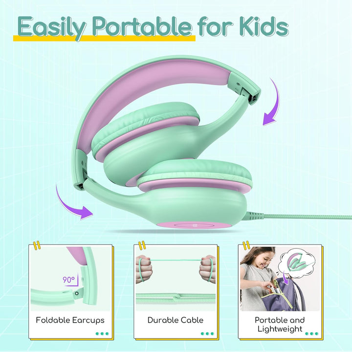 - FALTBARES UND ANPASSBARES DESIGN: Die Kinderkopfhörer lassen sich leicht zusammenfalten und in Rucksack oder Koffer verstauen. Sie passen sich verschiedenen Kopf- und Haartypen an und sind für Kinder im Alter von 3 bis 13 Jahren geeignet. Mit einem