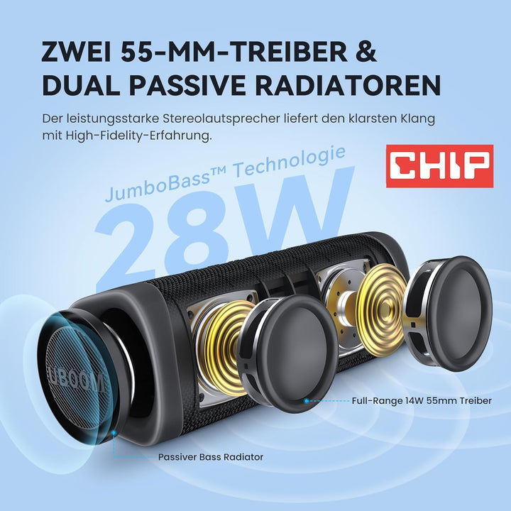 - đ€[Dual 55mm Treiber & passive Strahler, um den dröhnenden Bass zu spĂŒren] Die verbesserten 2 hochempfindlichen Treiber liefern atemberaubenden Stereoklang mit aussergewöhnlicher Klarheit und null Verzerrung. Zwei externen passiven Radiatoren