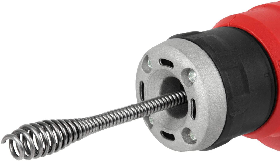 • CLEVER: Dank dem automatischen Vor- und Rückwärtslauf der Metallspirale ist das Rohrreinigen sowie das Wiedereinholen der Spirale kinderleicht. Vor- und Rückschub der Spirale werden über den vorderen roten Griff gesteuert