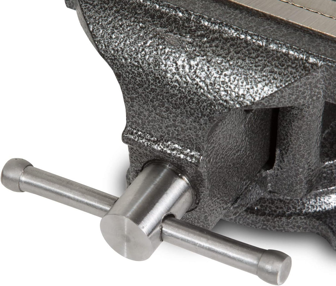 - Die langlebigen Spannbacken haben ein gezahntes Profil und sind 125 mm breit. Die maximale Spannweite des Schraubstocks beträgt 87 mm. Mit dem Stahlhebel können Werkstücke einfach ein- und ausgespannt werden, die innenliegende Stahlspindel läuft
