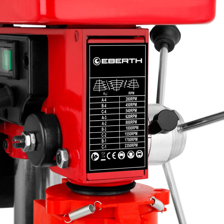 - LEISTUNGSSTARK: Mit der 550 Watt Tischbohrmaschine mit kugelgelagerter Bohrspindel von EBERTH bearbeiten Sie mühelos Holz, Metall, Kunststoffe und viele andere Materialien in 9 verschiedenen Geschwindigkeitsstufen (280, 450, 540, 620, 800, 1000, 1550,