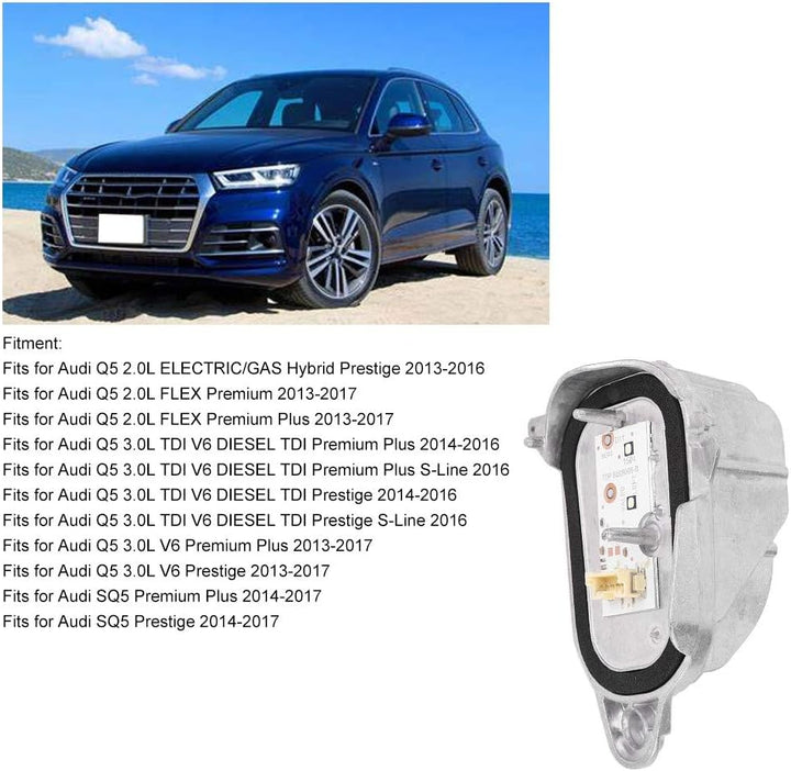 PRODUKTBESCHREIBUNGEN Spezifikation: Bedingung: 100% nagelneu Elementtyp: Steuergerät Ersatz für linken Scheinwerfer Material: Aluminium + ABS Farbe: als bild gezeigt OEM: 8R0941475B Einrichtung: Passend Ersatz für Audi Q5 2.0L ELECTRIC/GAS Hybrid Prestige 2013-2016 Passend Ersatz für Audi Q5 2.0L FLEX Premium 2013-2017 Passend Ersatz für Audi Q5 2.0L FLEX Premium Plus 2013-2017 Passend Ersatz für Audi Q5 3.0L TDI V6 TDI Premium Plus 2014-2016 Passend Ersatz für Audi Q5 3.0L TDI V6 TDI Premium Plus S-Linie 2016 Passend Ersatz für Audi Q5 3.0L TDI V6 TDI Prestige 2014-2016 Passend Ersatz für den Audi Q5 3.0L TDI V6 der TDI Prestige S-Line 2016 Passend Ersatz für Audi Q5 3.0L V6 Premium Plus 2013-2017 Passend Ersatz für Audi Q5 3.0L V6 Prestige 2013-2017 Passend Ersatz für Audi SQ5 Premium Plus 2014-2017 Passend Ersatz für Audi SQ5 Prestige 2014-2017 Paketliste: 1 x Steuergerät Scheinwerfer links