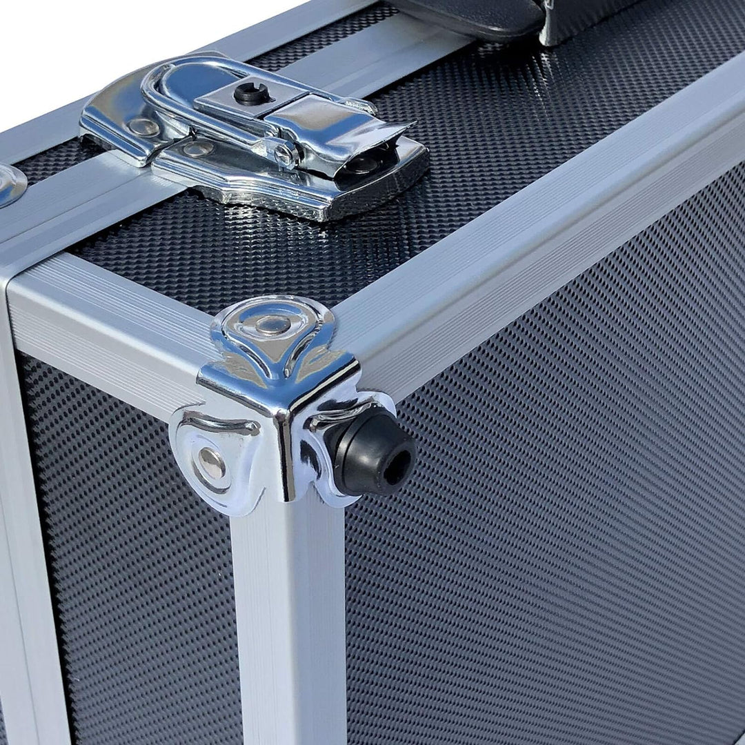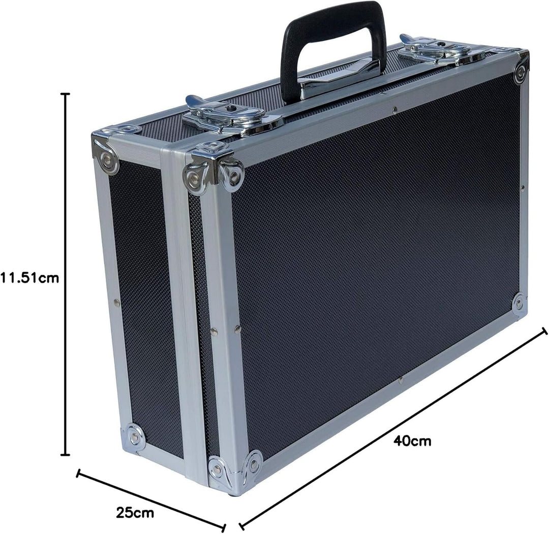 - Der robuste Koffer ist hergestellt aus widerstandsfähigem Aluminium / Kunststoff mit einer Innenpolsterung aus schwarzem Neopren.