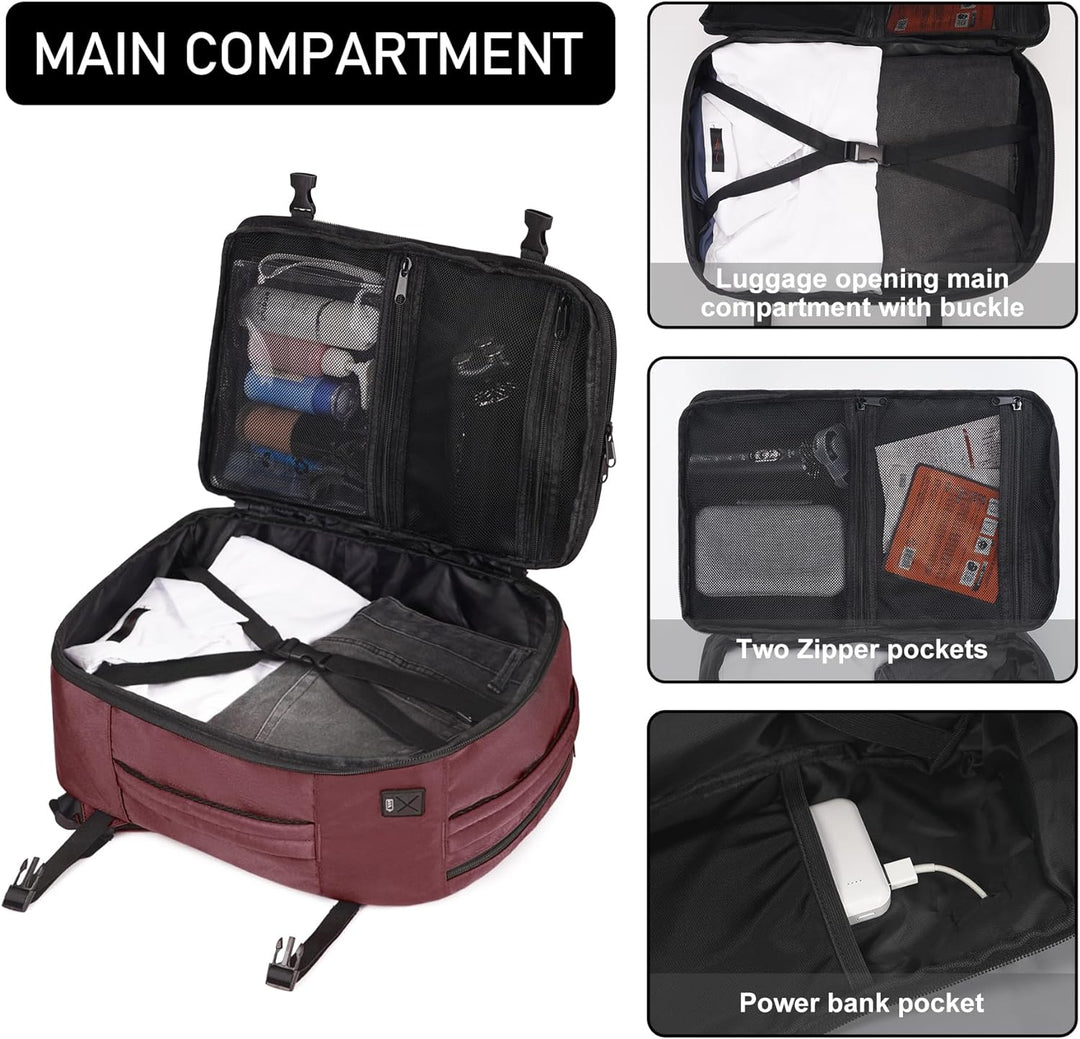 - 【GERÄUMIG UND EINFACH ZU VERWENDEN】: Das Hauptfach kann wie ein Koffer geöffnet werden, mit 2 Taschen für Essentials. Elastische Gurte sind ideal für sperrigere Gegenstände. Seitliche Kompressionsgurte passen den Platz im Rucksack an, damit Sie