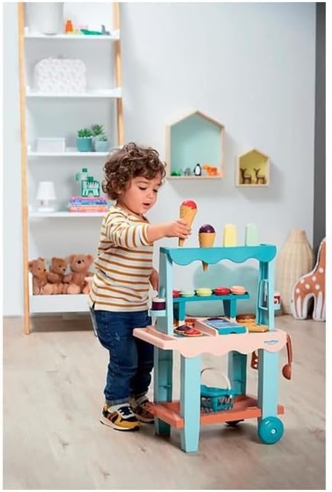 - Le Stand des Gourmands: ein Händler auf Rädern aus Eis und raffinierten Backwaren in zarten Farben für kleine Feinschmecker. 26 tlg