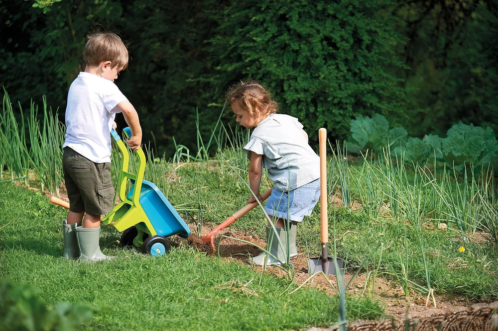 - Alles für Garten: Dieses Garten-Set bestehend aus einer Schubkarre, einer Giesskanne und zwei grossen 70 cm grossen Werkzeugen ermöglicht es Ihrem Kind, der König der Gartenarbeit zu werden. Ab 18 Monaten. Herkunft Frankreich.